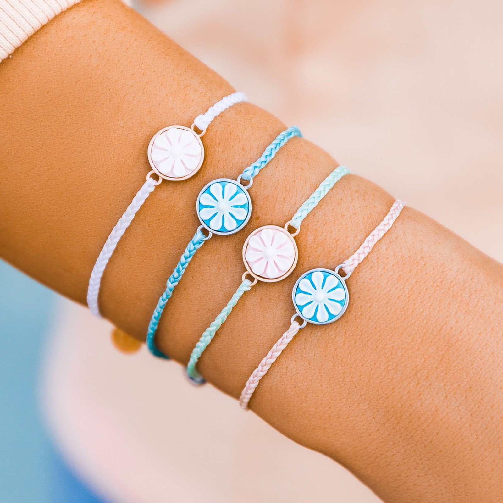 Bringing preppy aloha vibes with our new Cameo Charm Bracelet this summer! In baby pinks and icy blues, this bracelet features a cameo flower charm sitting pretty on a bitty braid.