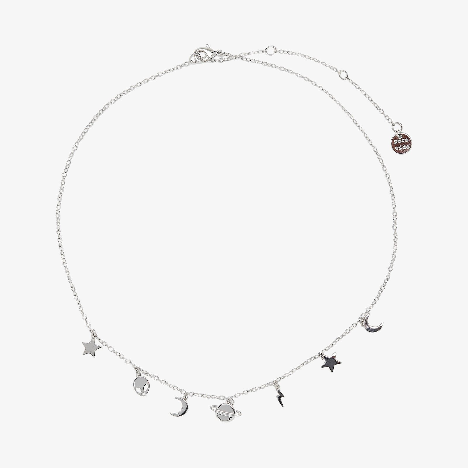 There’s no necklace on earth cuter than the Celestial Charms Choker! This dainty silver style is set on a delicate chain, with dangling space-inspired charms for an out-of-this-world look. Pair it with the Celestial Charms Huggies for cool cosmic vibes.