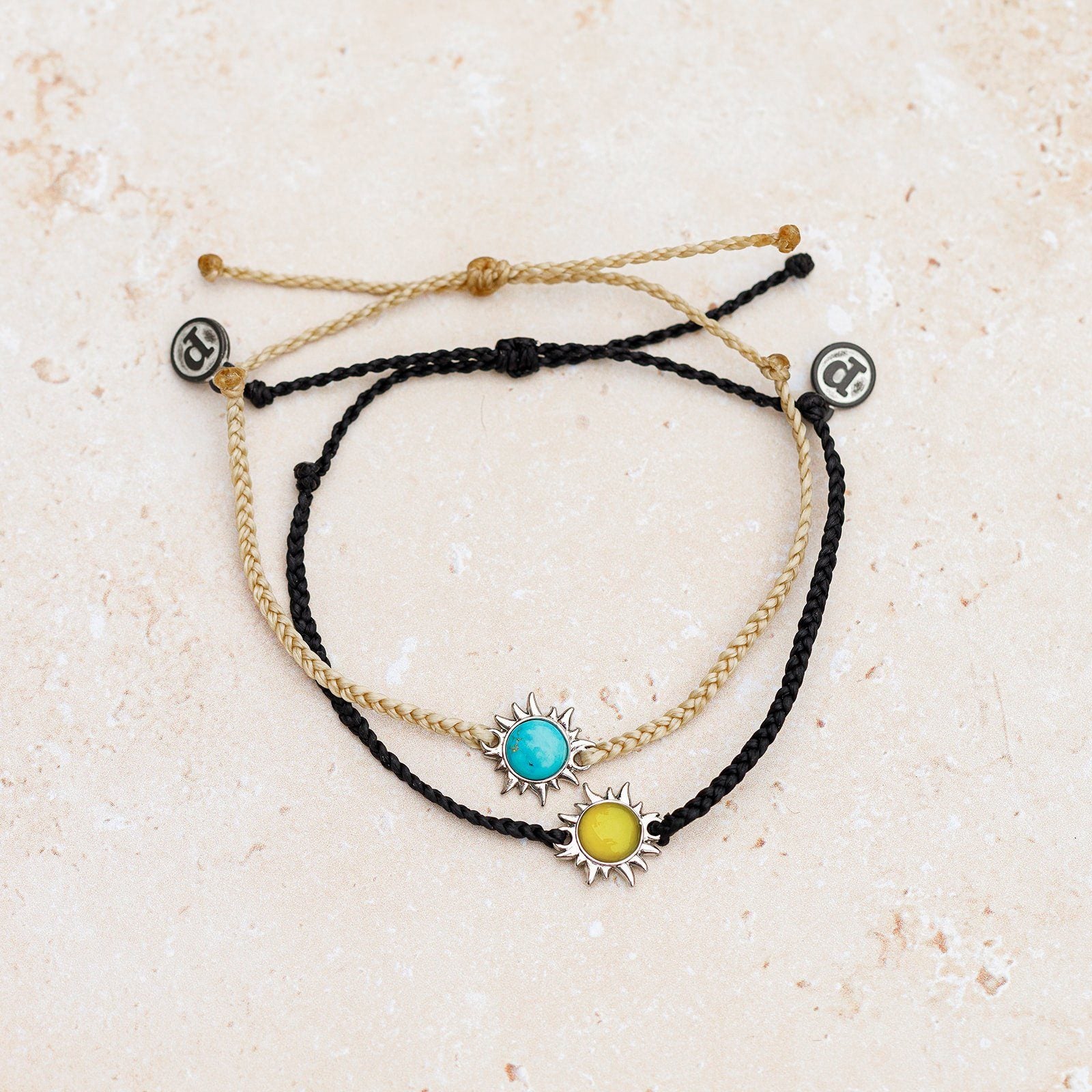 Shine brighter than the sun in our Celestial Sun Bracelet. This bitty braid design comes in two string-and-stone combos—black with citrine and sandy white with turquoise—and adds a ray of beauty to every PV stack.