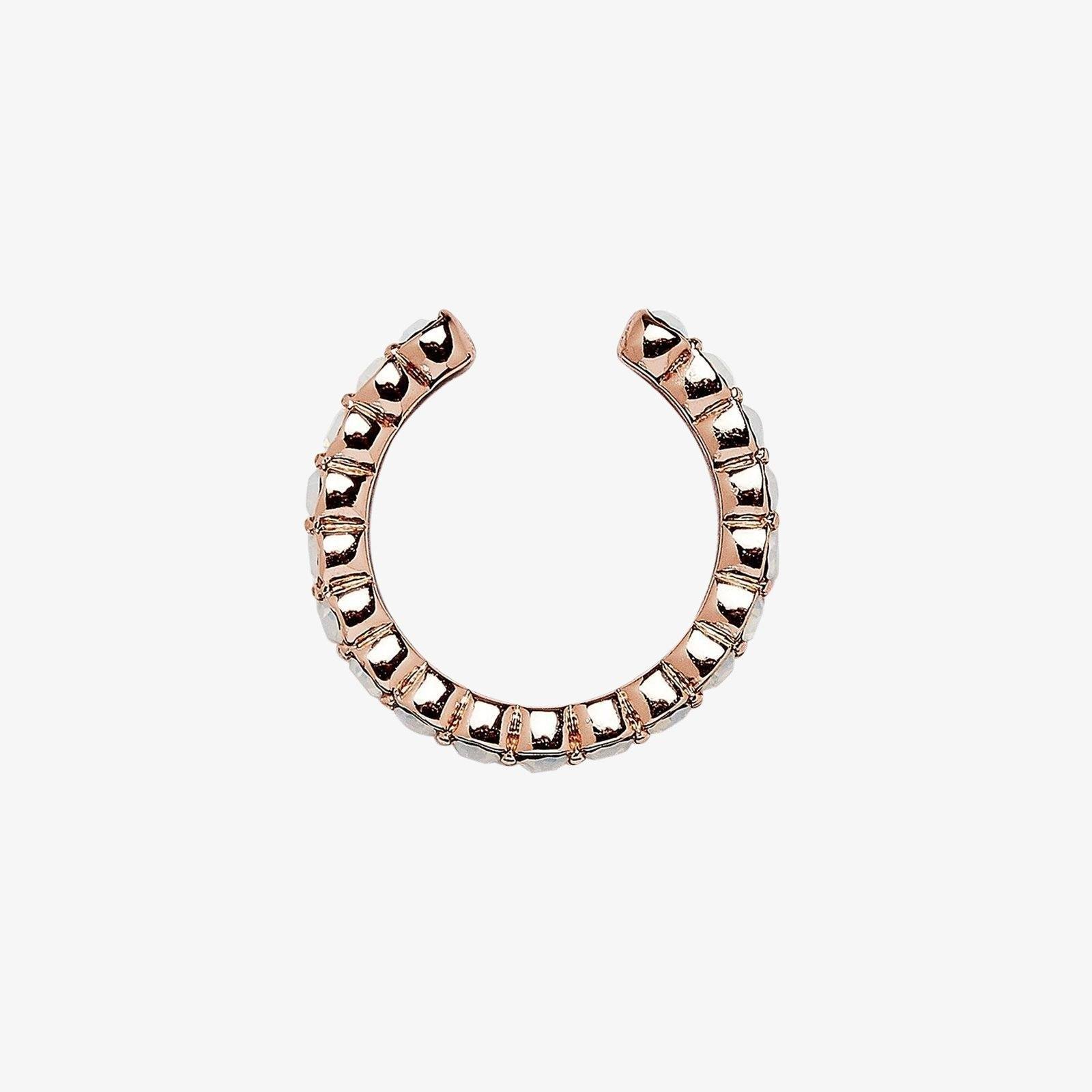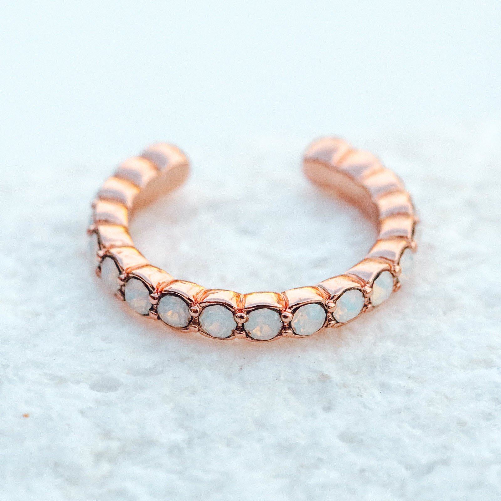Take your luxe look to the next level with our Delicate Opal Stone Ear Cuff. This romantic rose gold style features glittering opalescent glass stones for an eye-catching effect. No piercing? No problem. This is a clip-on cuff made for anyone to wear!