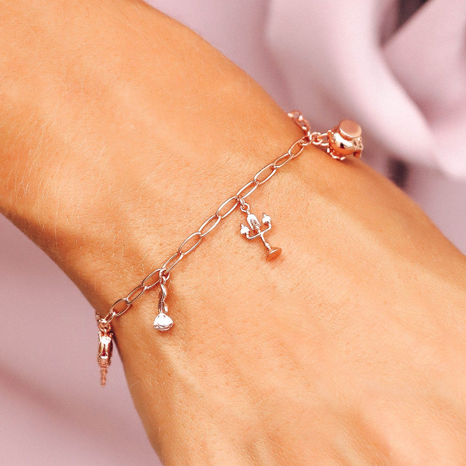 Our Disney Belle Charms Chain Bracelet will surely make you the Belle of the ball! You can find Disney's Mrs. Potts, Disney's Chip, Disney's Cogsworth and Disney's Lumiere plus three more Disney Beauty and the Beast inspired charms finished in rose gold, Heavenly Pink and Pastel Lilac details.