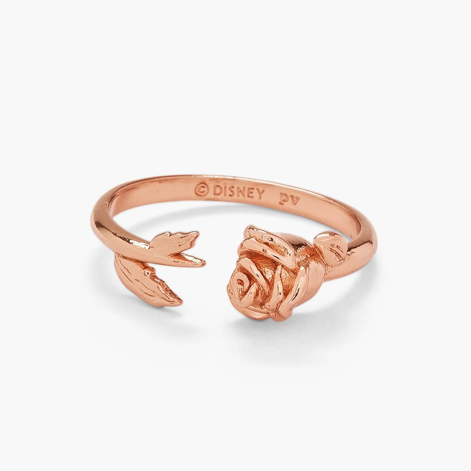 Snag the Disney Belle Open Rose Ring before the last petal falls! The open faced ring features a romantic flower design with a rosebud and leaf detail that lays beautifully open on your finger in a *rose* gold finish of course!