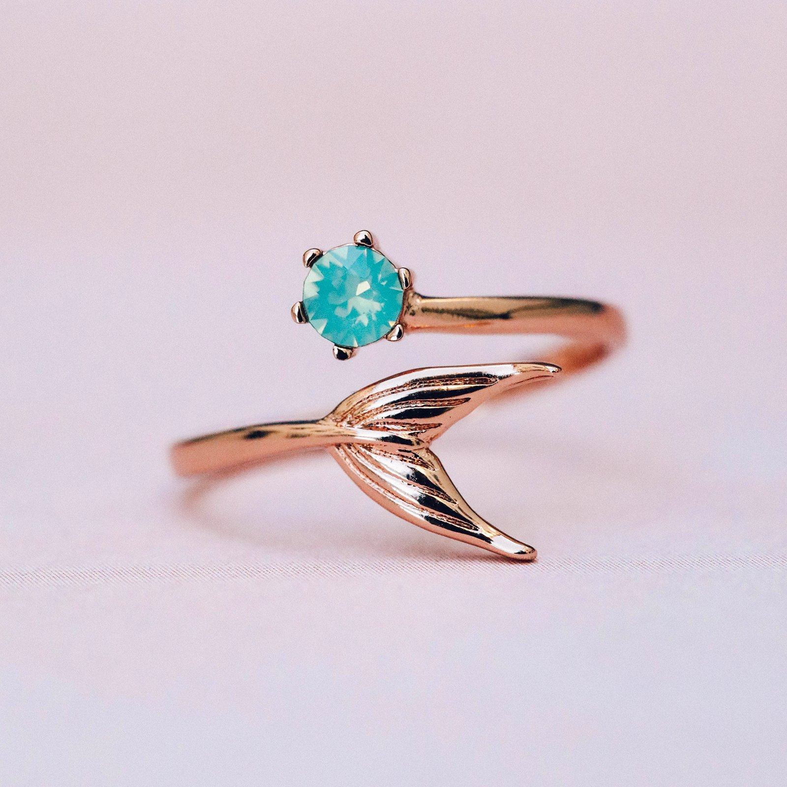 Look at this Disney Little Mermaid Fin Open Ring, isn't it neat? Add this Disney Ariel inspired beauty to your collection, featuring a textured mermaid fin on one end and a Pacific Opal stone on the other in a rose gold finish!