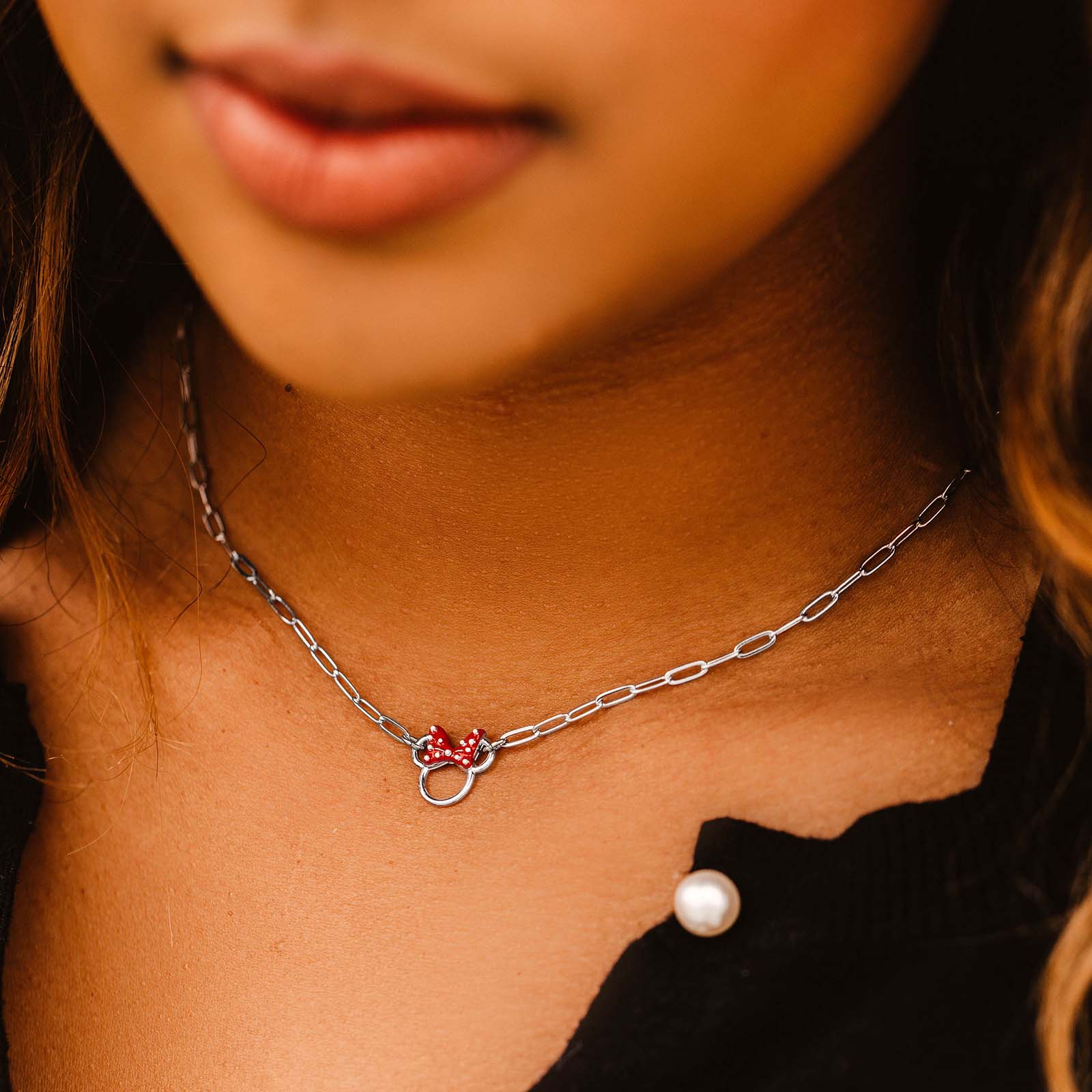 One thing we’ve learned from Minnie Mouse? When in doubt, put a bow on it! Our Minnie Mouse Paperclip Chain Choker features a super cute outlined Minnie Mouse silhouette, with her famous polka dot bow in a bright enamel finish.
