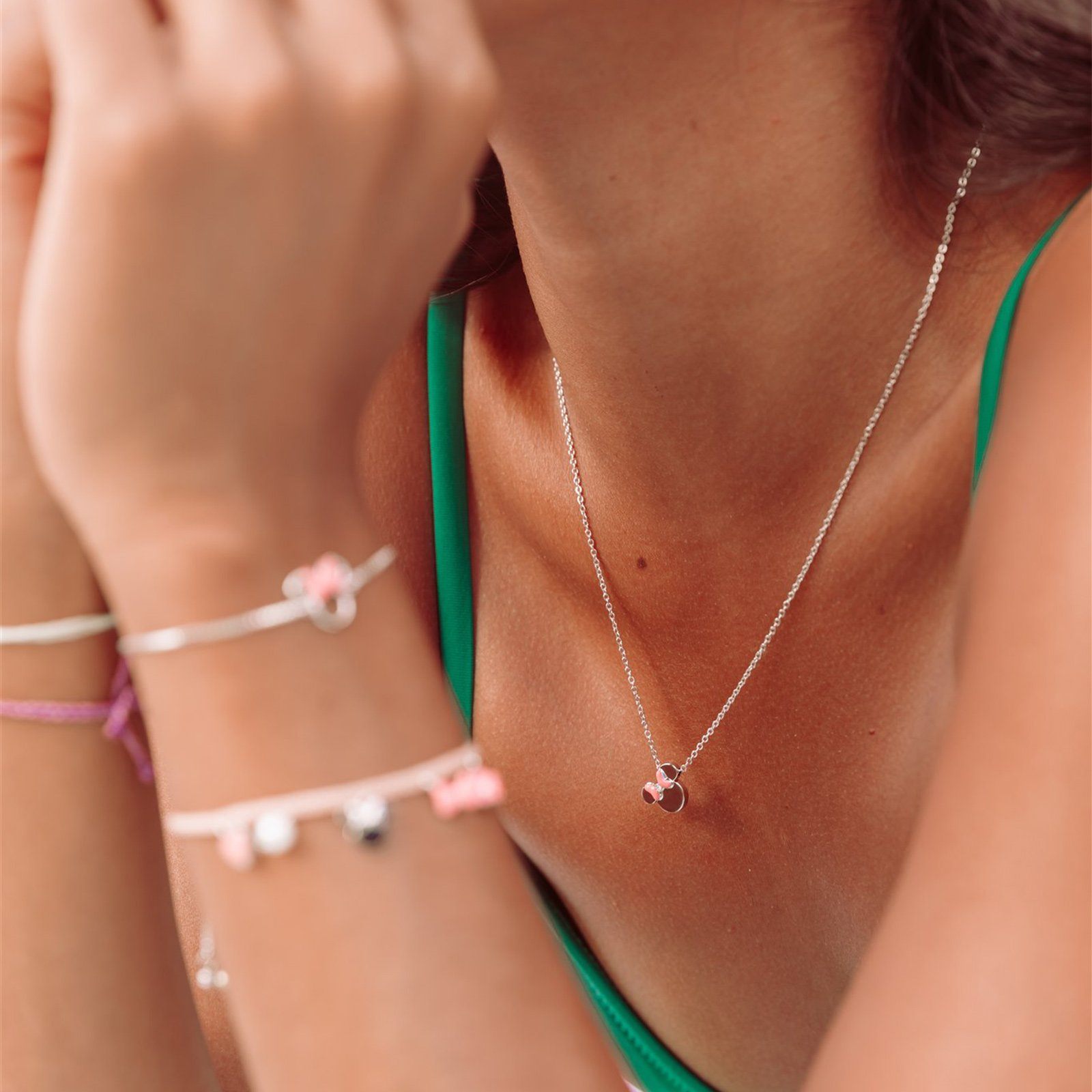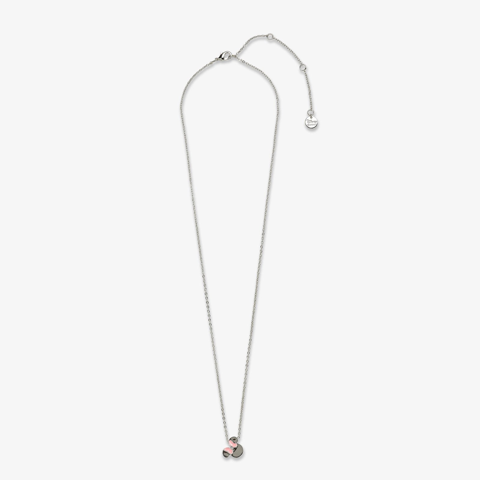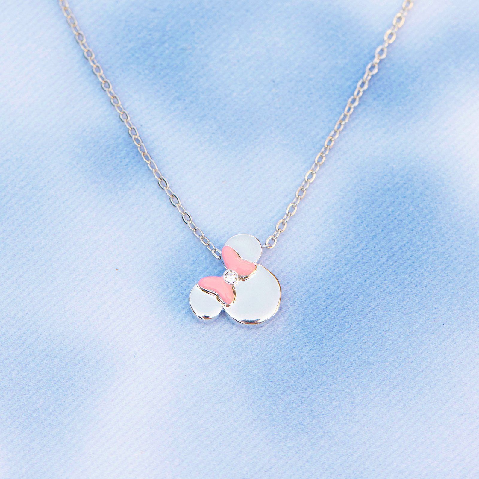 Nothing says romance like a little Disney Minnie Mouse Pendant Necklace! Featuring a delicate flat cable chain with a Minnie Mouse head and of course her bow in tickled pink and a beautiful bitty clear crystal! Pair this necklace with our Disney Mickey Mouse Chain Choker for a layered and totally in love look!