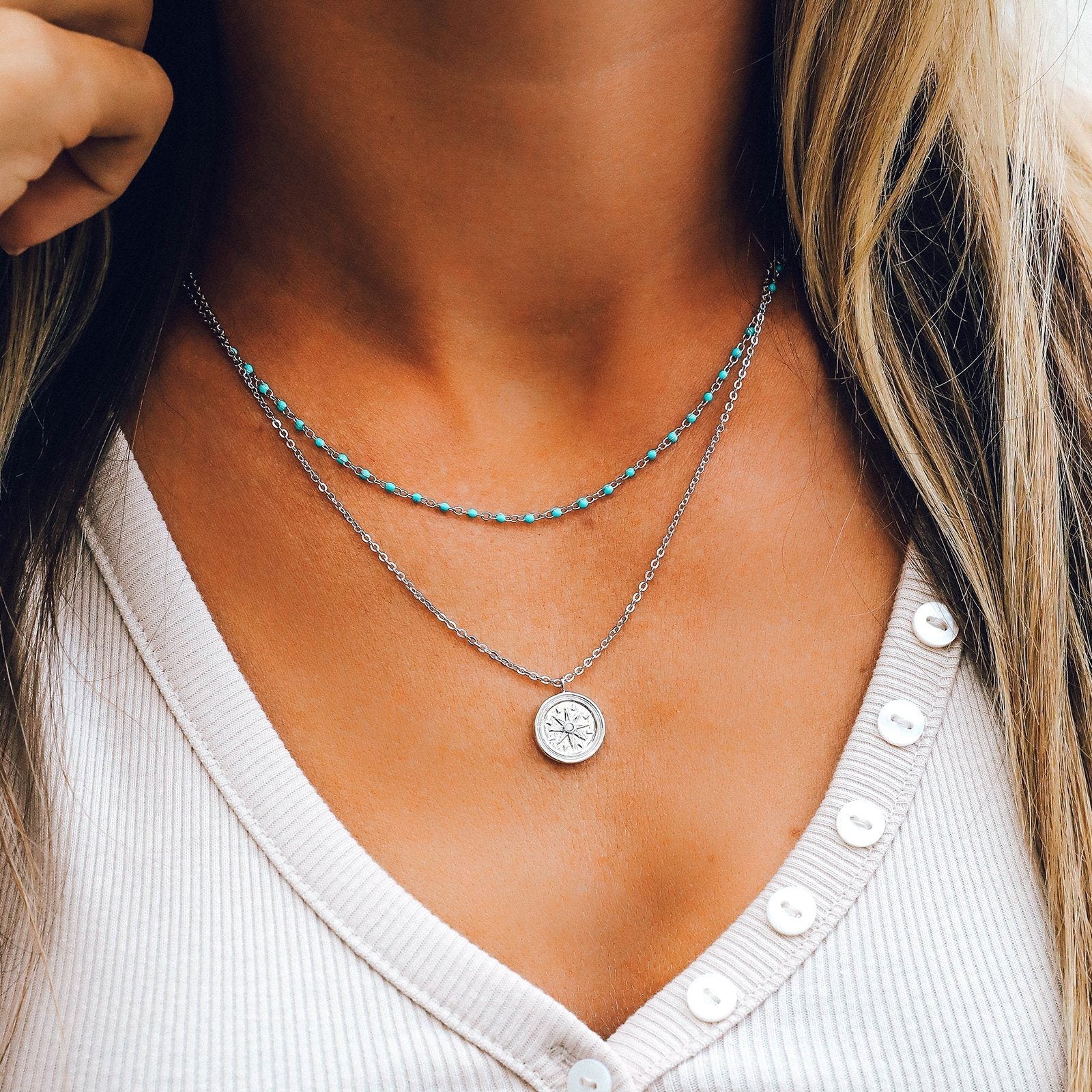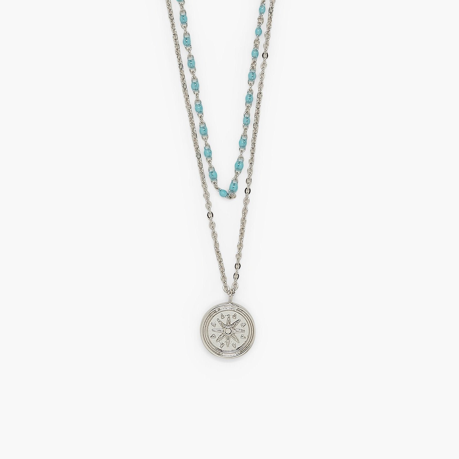 Follow your own path with our Disney Pocahontas Compass Coin Layered Necklace! An enamel bead chain hangs just above a compass coin pendant detailed with an authentic coin-like texture and a bitty opal stone inspired by one of our fave Disney Princesses!