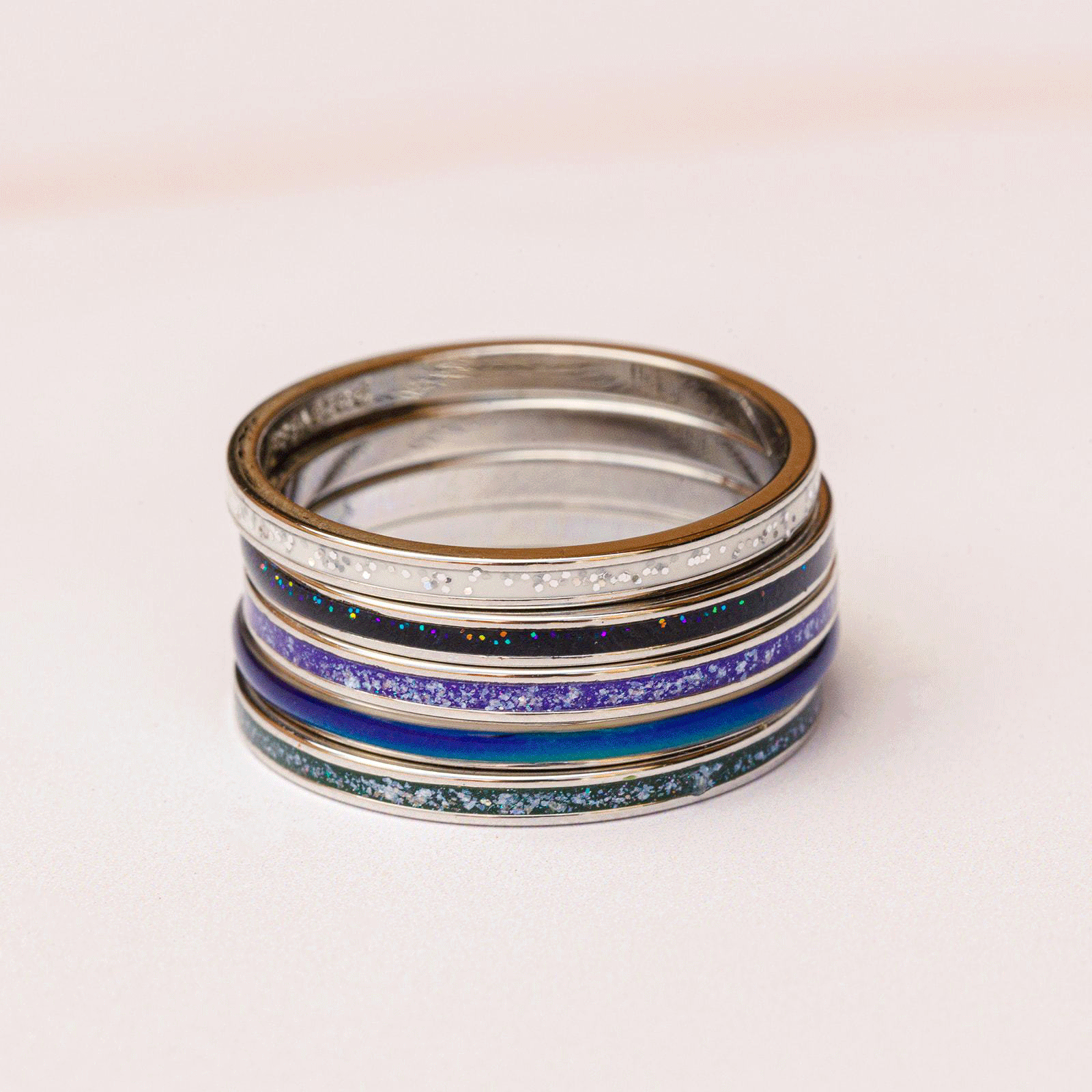 Get allllll ready for autumn with our Fall Fling Ring Set! This set of five stackable styles comes in the perfect color combos: silver with blues, purples and greens; and rose gold with pinks, whites and pearls. Wear ‘em all together for the ultimate fall ‘fit, or break them apart depending on your outfit. And did we mention that this stack features a mood band that will give you all the feels.