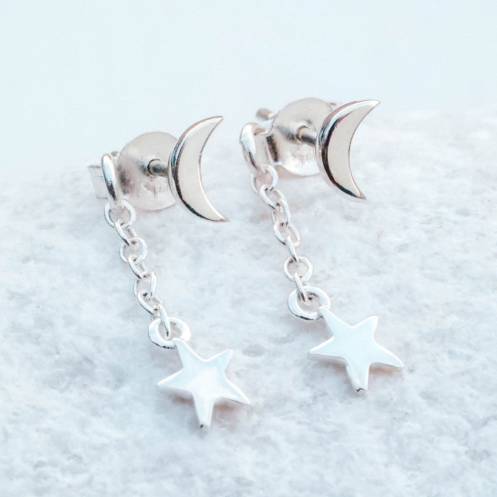 Our Falling Stars Earring Set is officially the cutest pair on the planet. This mismatched design features a crescent moon stud and dangling star charm in Sterling Silver or Rose Gold. Try ‘em with our Cosmos Choker for even more celestial charm.