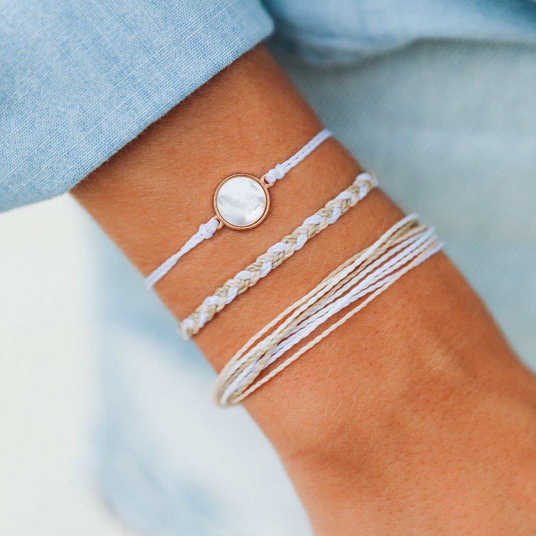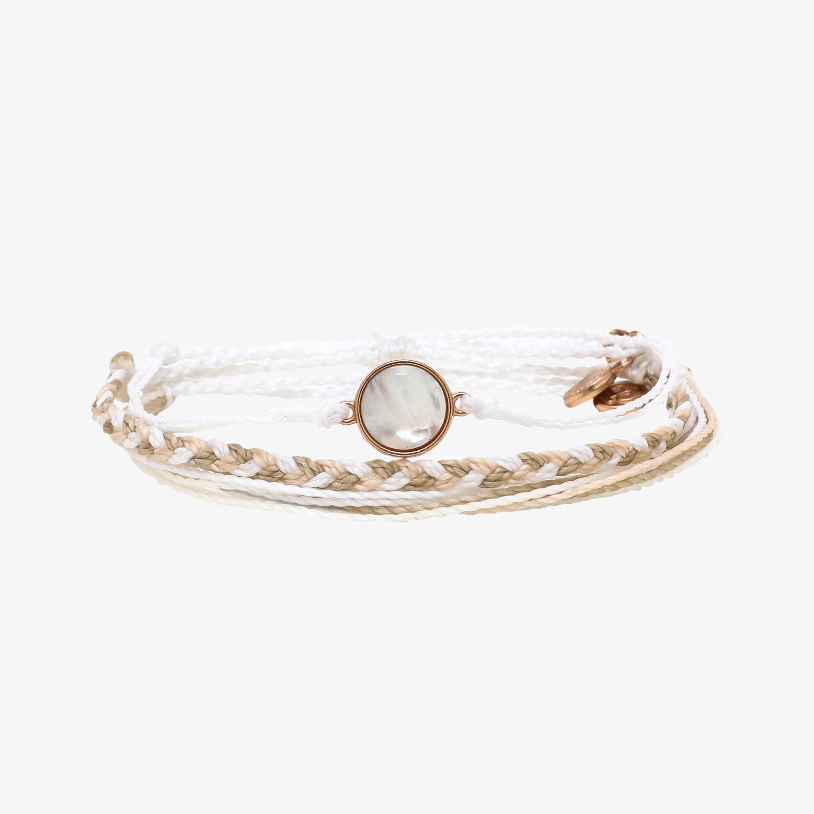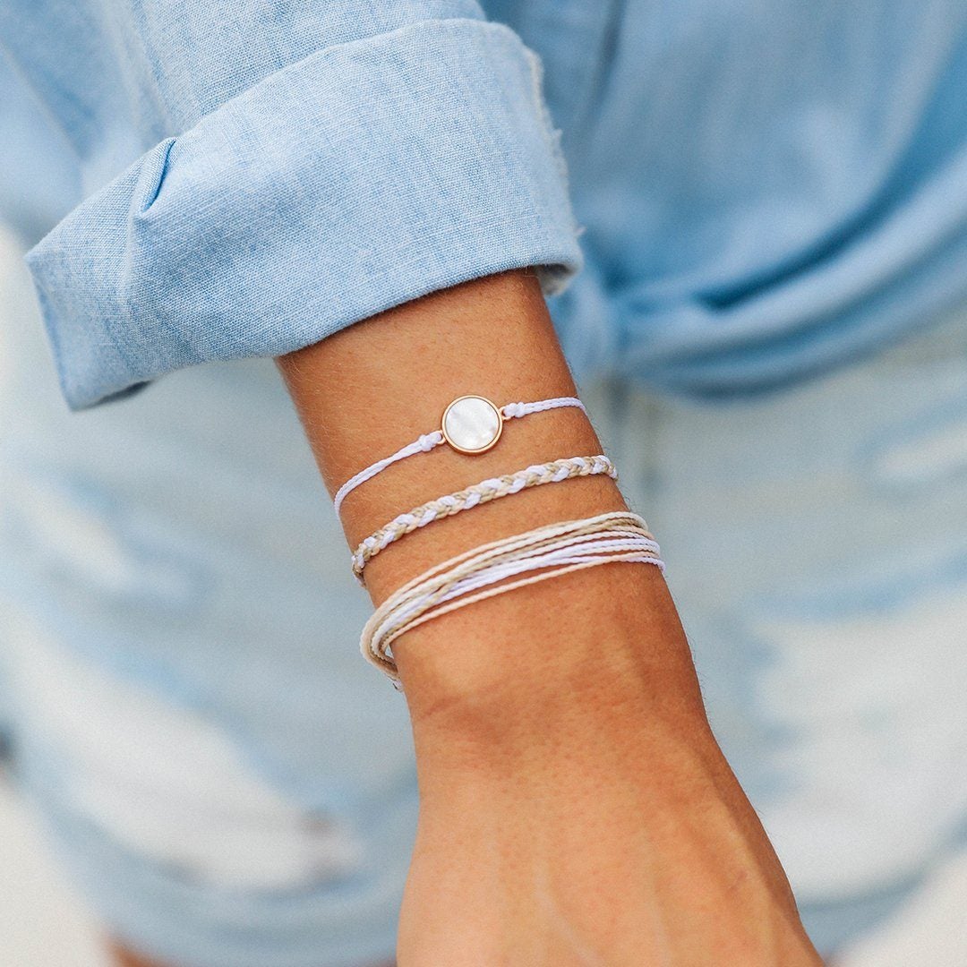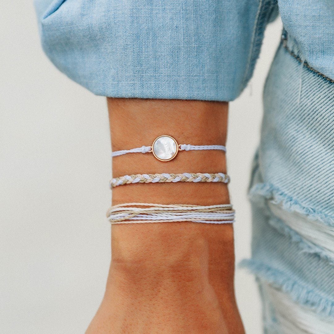 Looking for a break from super-bright bracelets? Our Full Moon Rising Pack is the light and lovely stack for you! It features a trio of refreshing (and super-feminine) bracelets, including an Original and mini braided style, plus our Mother of Pearl Charm Bracelet (designed with a 100% genuine gemstone that lowers stress and enhances creativity!).