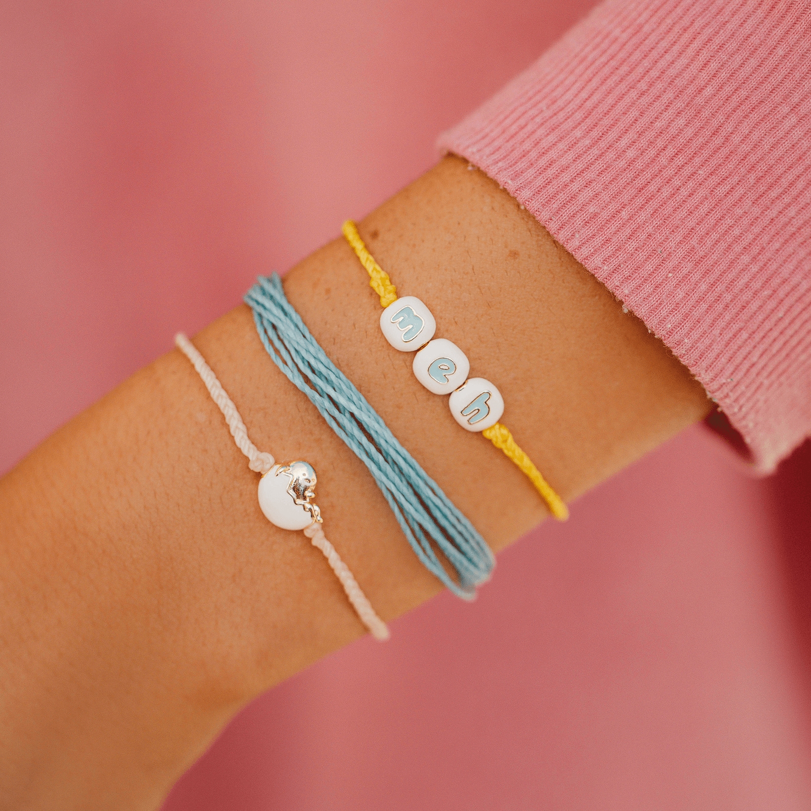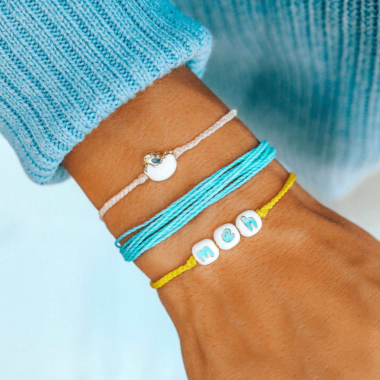 Your outfit’s about to be eggs-ellent, thanks to our Gudetama Style Pack. Based on the adorable Sanrio character, this stack includes a set of three styles: a crystal blue Original, a bitty braid Gudetama charm piece, and an alphabet-letter “meh” bracelet to embrace Gudetama’s laidback vibe. For each Sanrio style sold on our website, Pura Vida will donate 5% of the purchase price* to Kindness.org, a nonprofit organization dedicated to building a kinder world.
