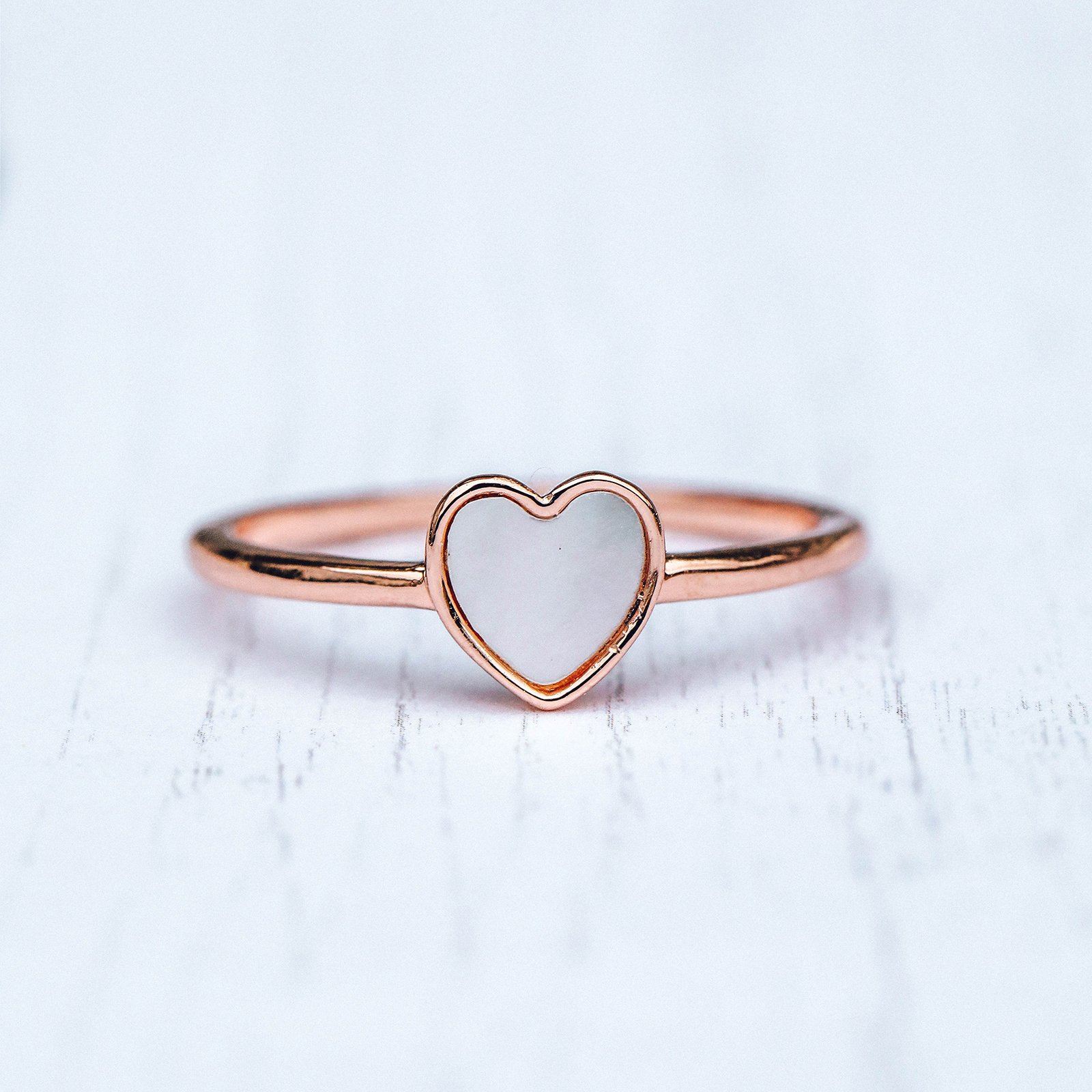 Our motto: Always follow your heart. *Especially* when it’s leading you to our Heart of Pearl Ring! This stackable style comes in two metal finishes—silver and rose gold—with a heart-shaped charm filled with a Mother of Pearl stone. Each stone is 100% genuine, so no two look alike (all the more reason to buy one of each!).
