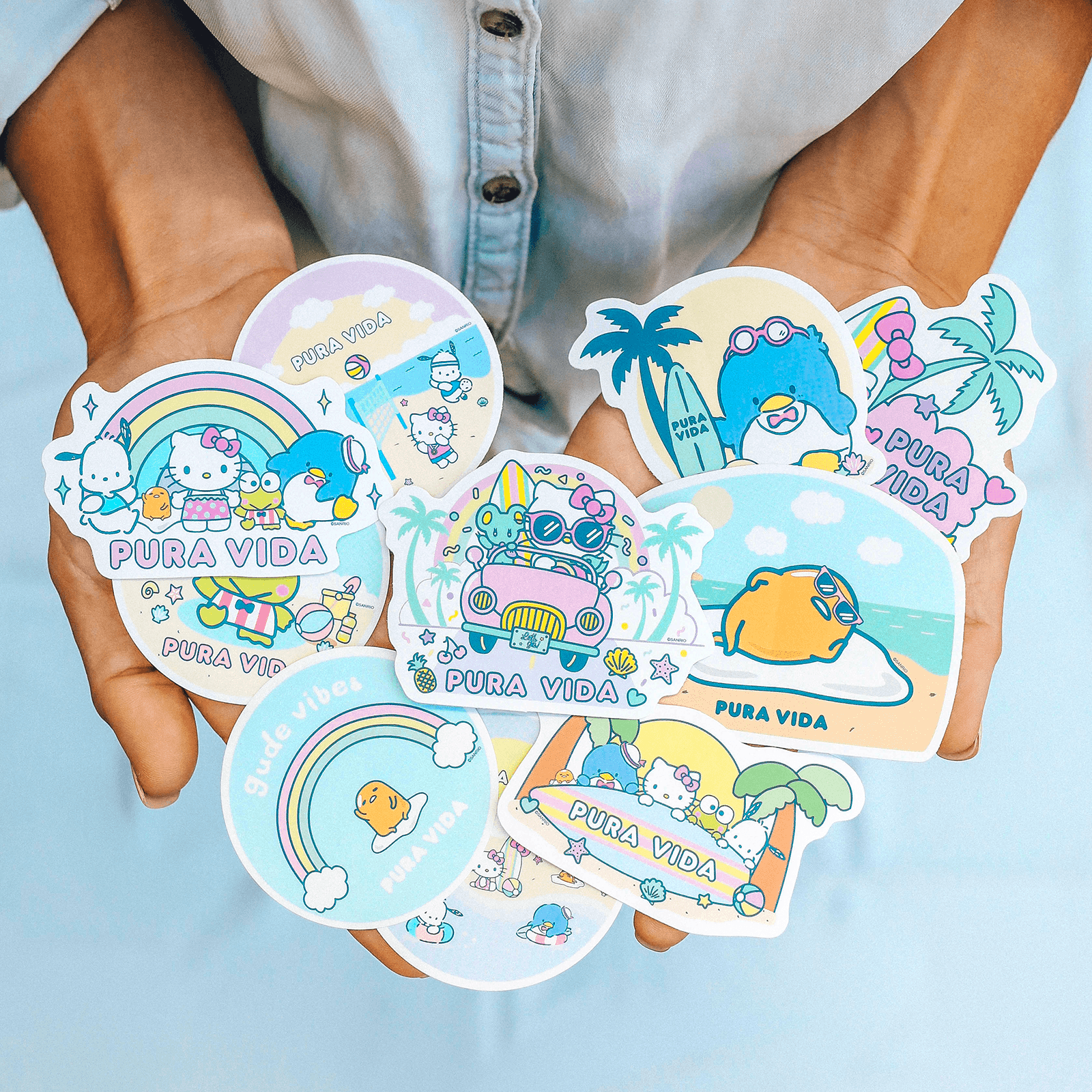 Hang ten with our Hello Kitty Surf Sticker! This pretty pink and blue design features Hello Kitty on the beach, and adds a quirky-cute effect to whatever you stick it on. For each Sanrio style sold on our website, Pura Vida will donate 5% of the purchase price* to Kindness.org, a nonprofit organization dedicated to building a kinder world.