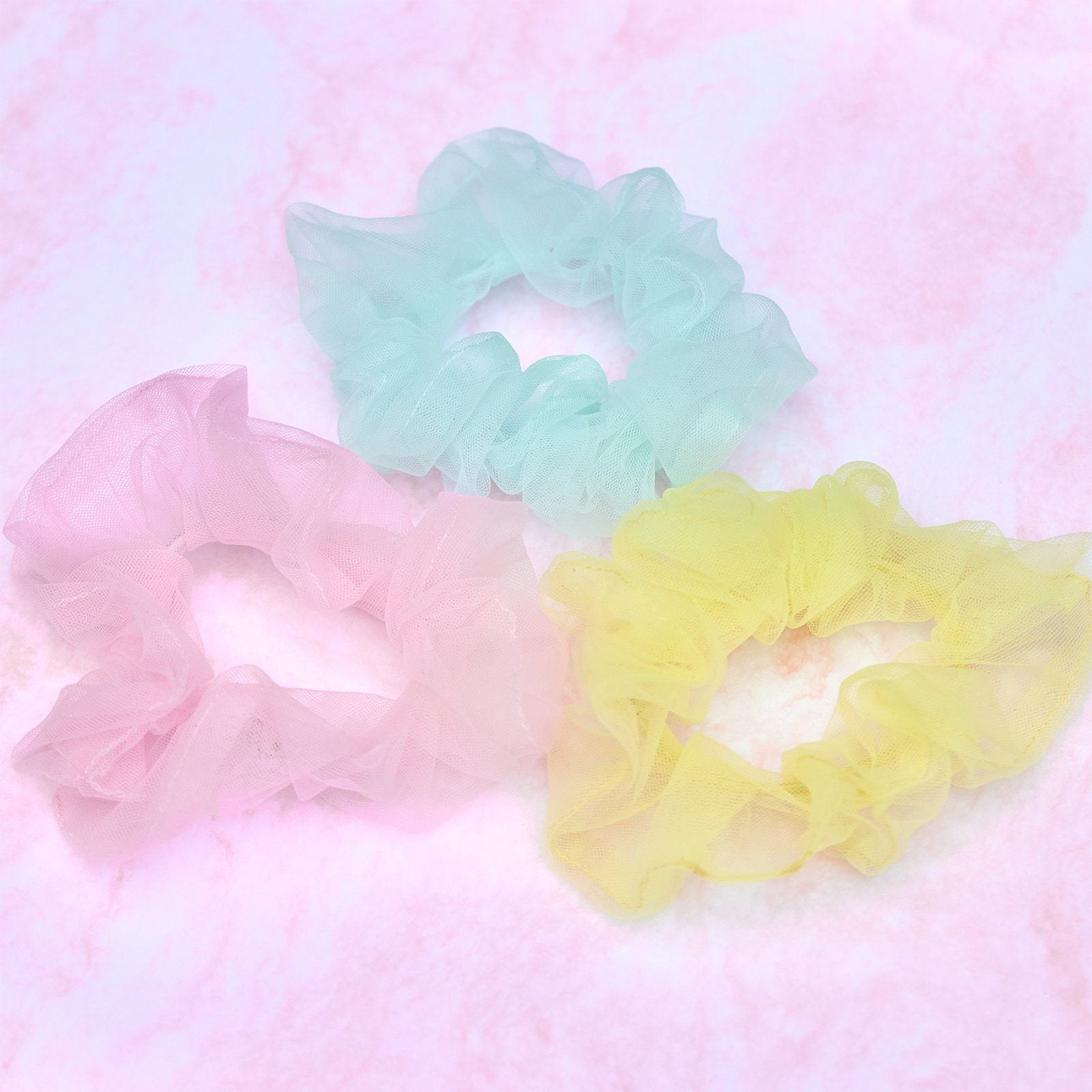 Delicate and flowy, the Lita Tulle Scrunchie Set is an absolute must! This set includes the perfect summer colors in a light weight tulle fabric that holds your hair *and* looks cute!