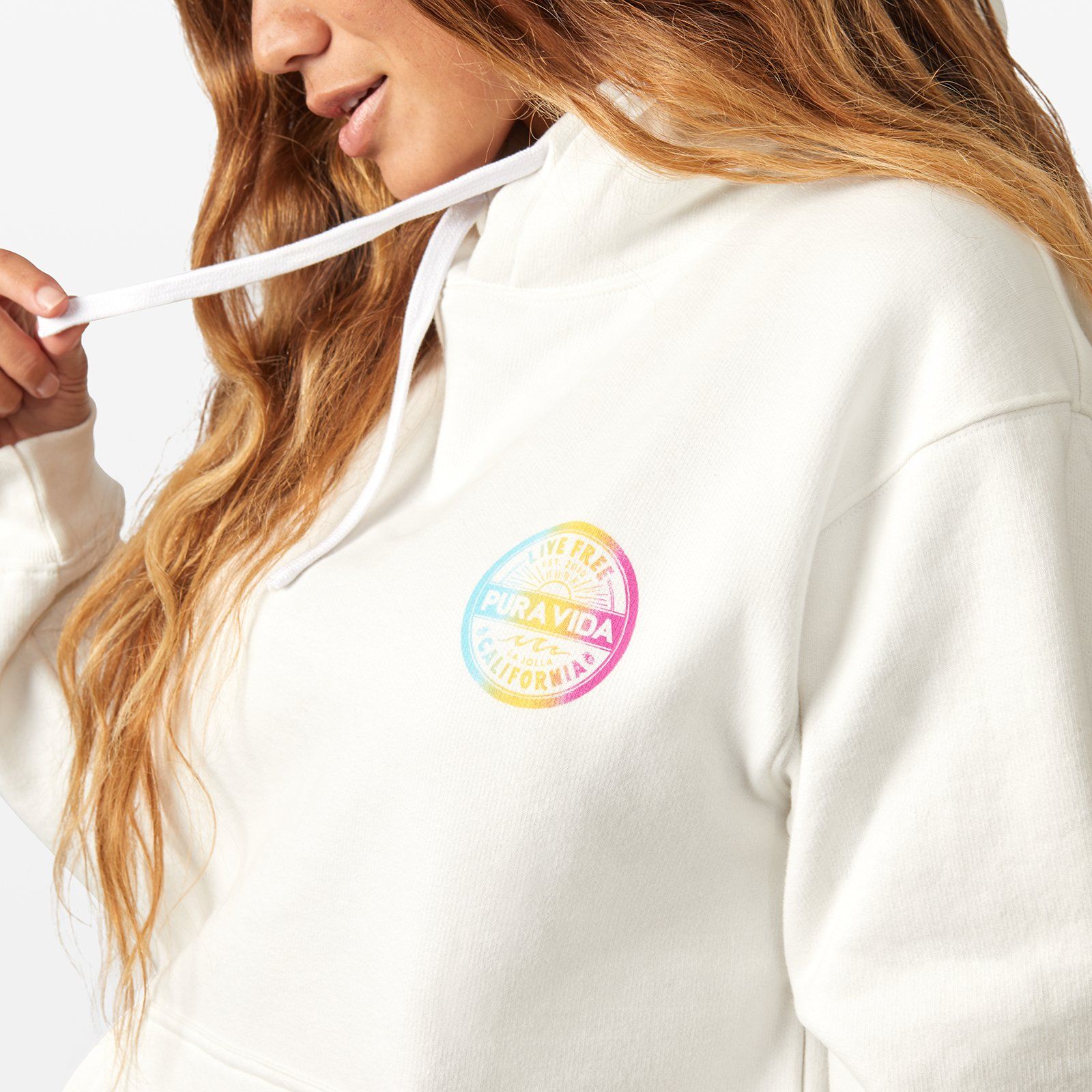 A classic of all classics, our Live Free Hoodie is an absolute essential! An epic Live Free graphic on the front and back of this white vintage hoodie makes this a super comfy staple! Don’t forget, after your first wash this one shrinks in all the right places for a perfect fit!
