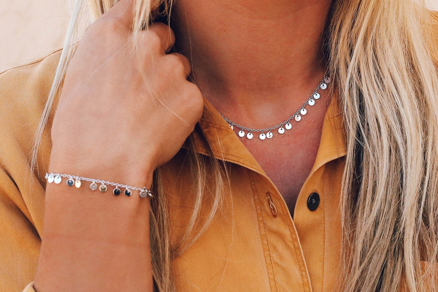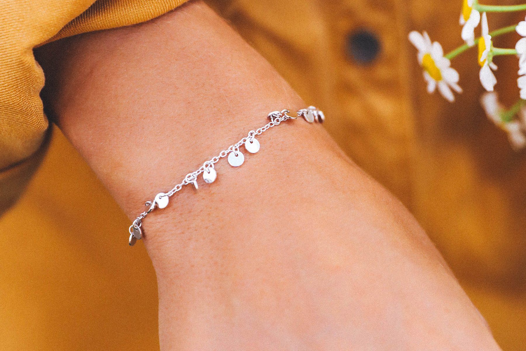 Step up your stack game with our Mini Coin Bracelet. Designed with a delicate silver chain and itty bitty dangling coins, it’s bold enough to stand on its own (but looks even better and more boho when paired with Originals, cuffs and other bracelets).
