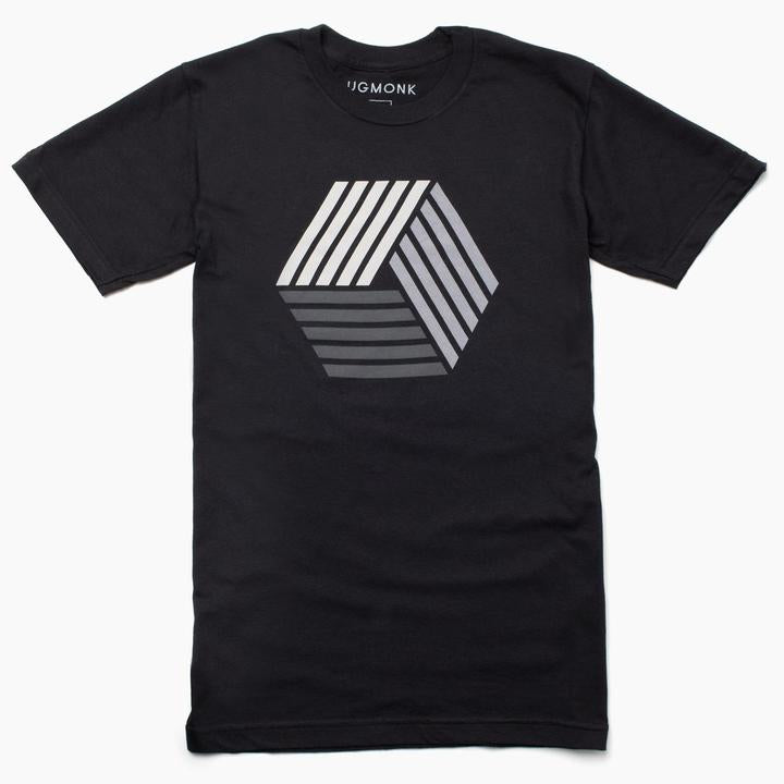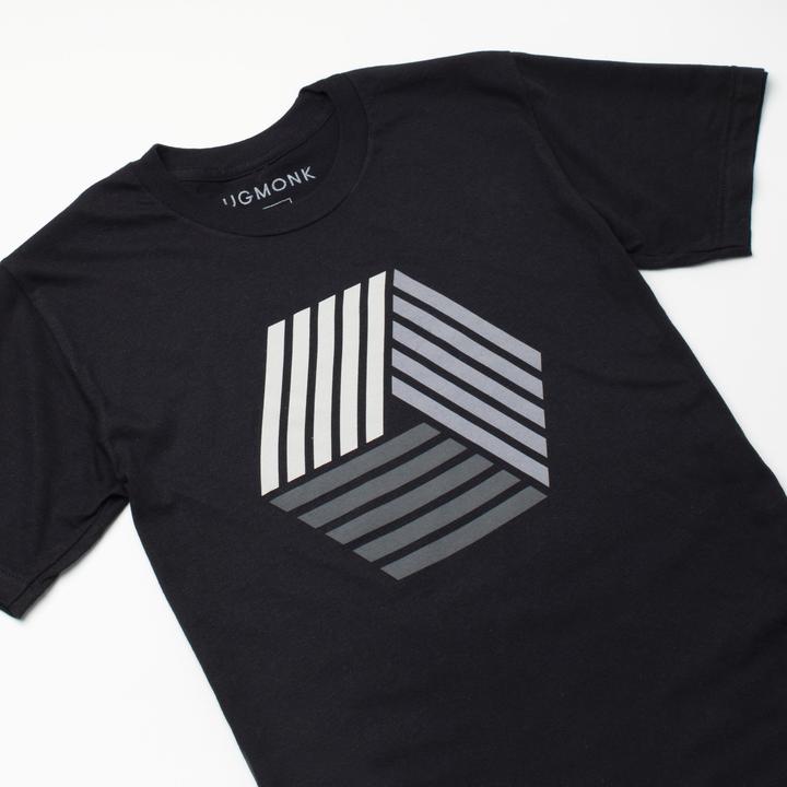 Each tee uses thick lines to express a different design concept. The way the lines relate to one another, the negative space between them, and the interplay of colors matter as much as the shapes of the lines themselves.