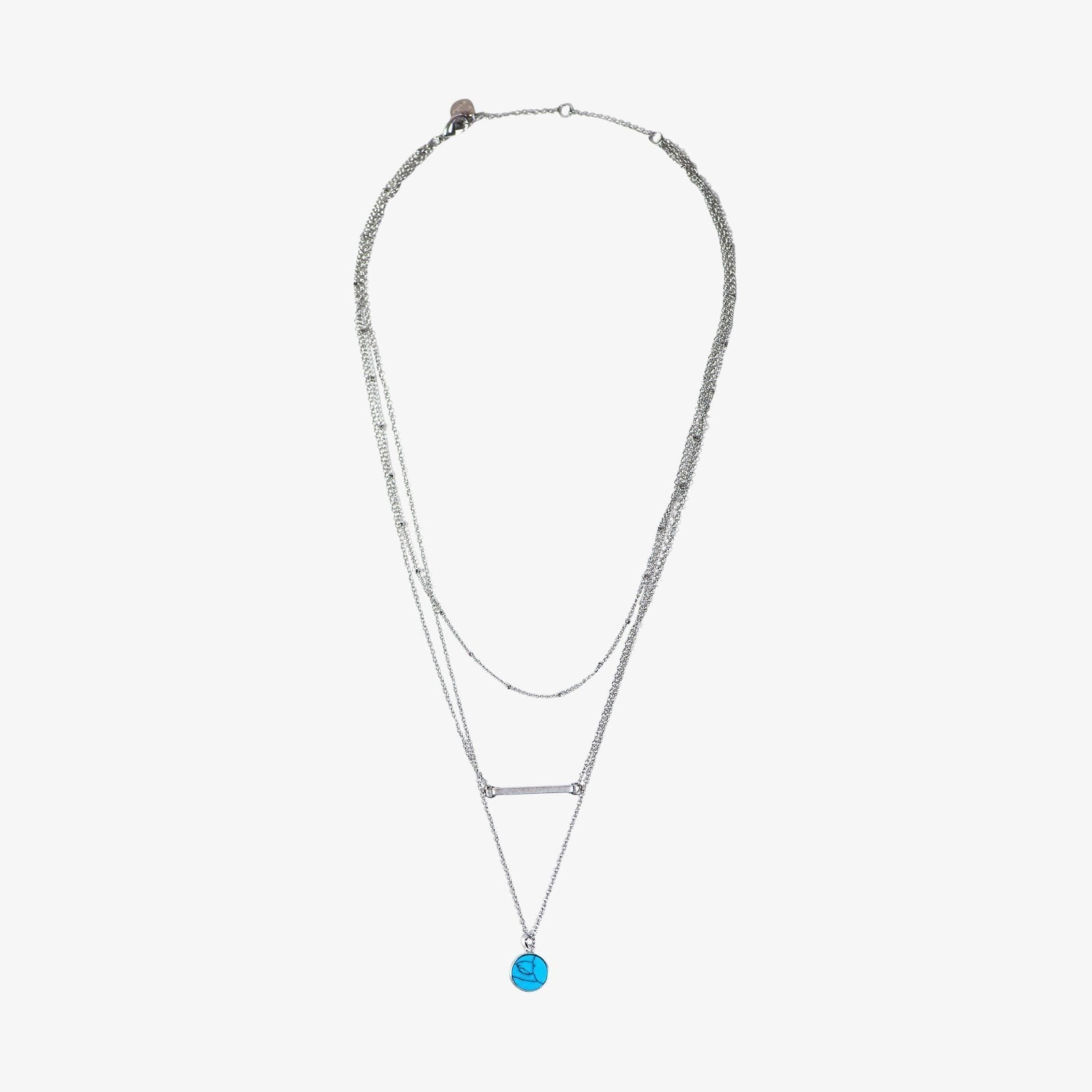 Why choose just one necklace when you can have a matching set instead? Our Multi Necklace Sets come in silver and rose gold varieties, and feature a dainty chain choker, metal bar necklace and dangling pendant design that comes in two different gemstones: bright, bold turquoise or shimmering mother of pearl. Each gemstone is 100% genuine, making it totally unique and super exclusive.