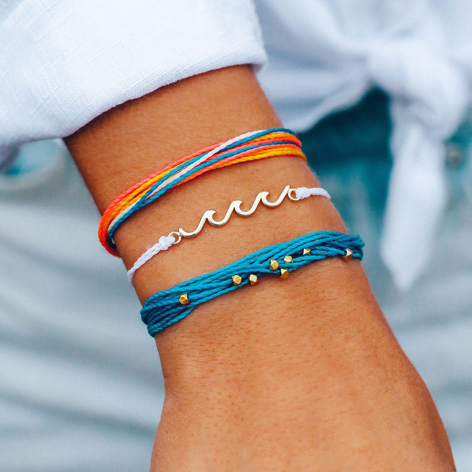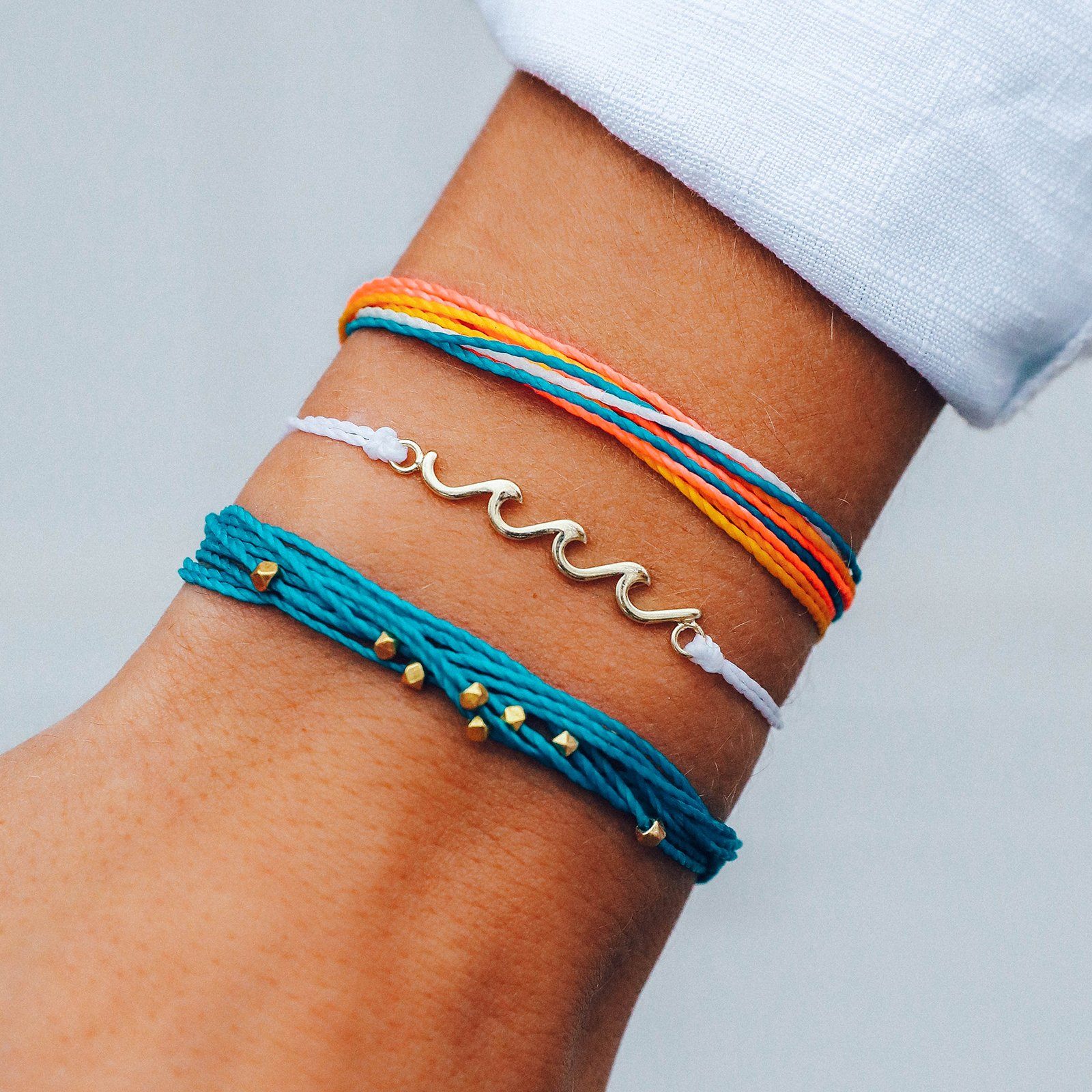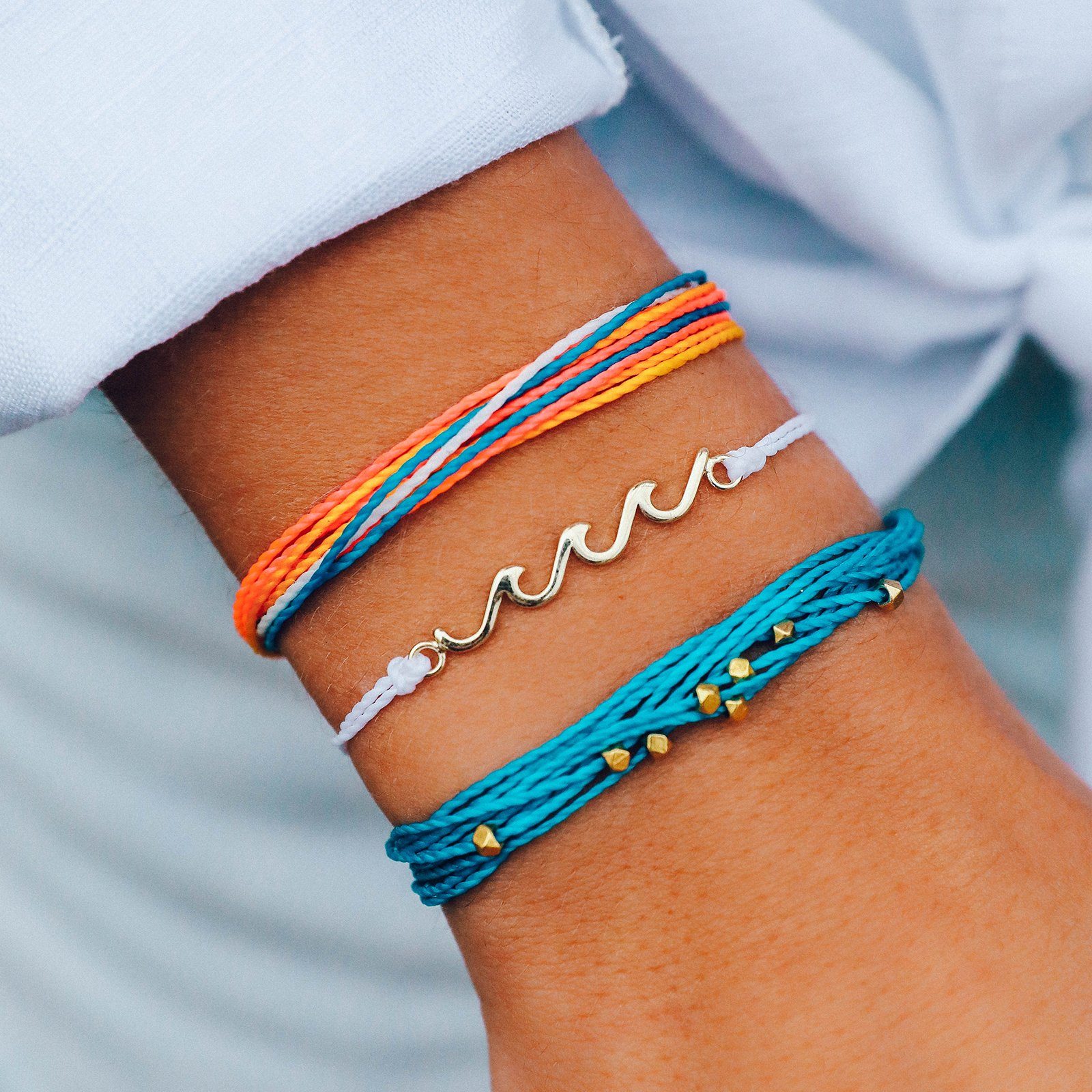 Nothing makes a bolder statement than our Neon Riptide Pack! This bright, super-fun and eye-catching stack features a vibrant Malibu, a neon-hued Original, and a fresh white Wave style with a gorgeous gold charm.