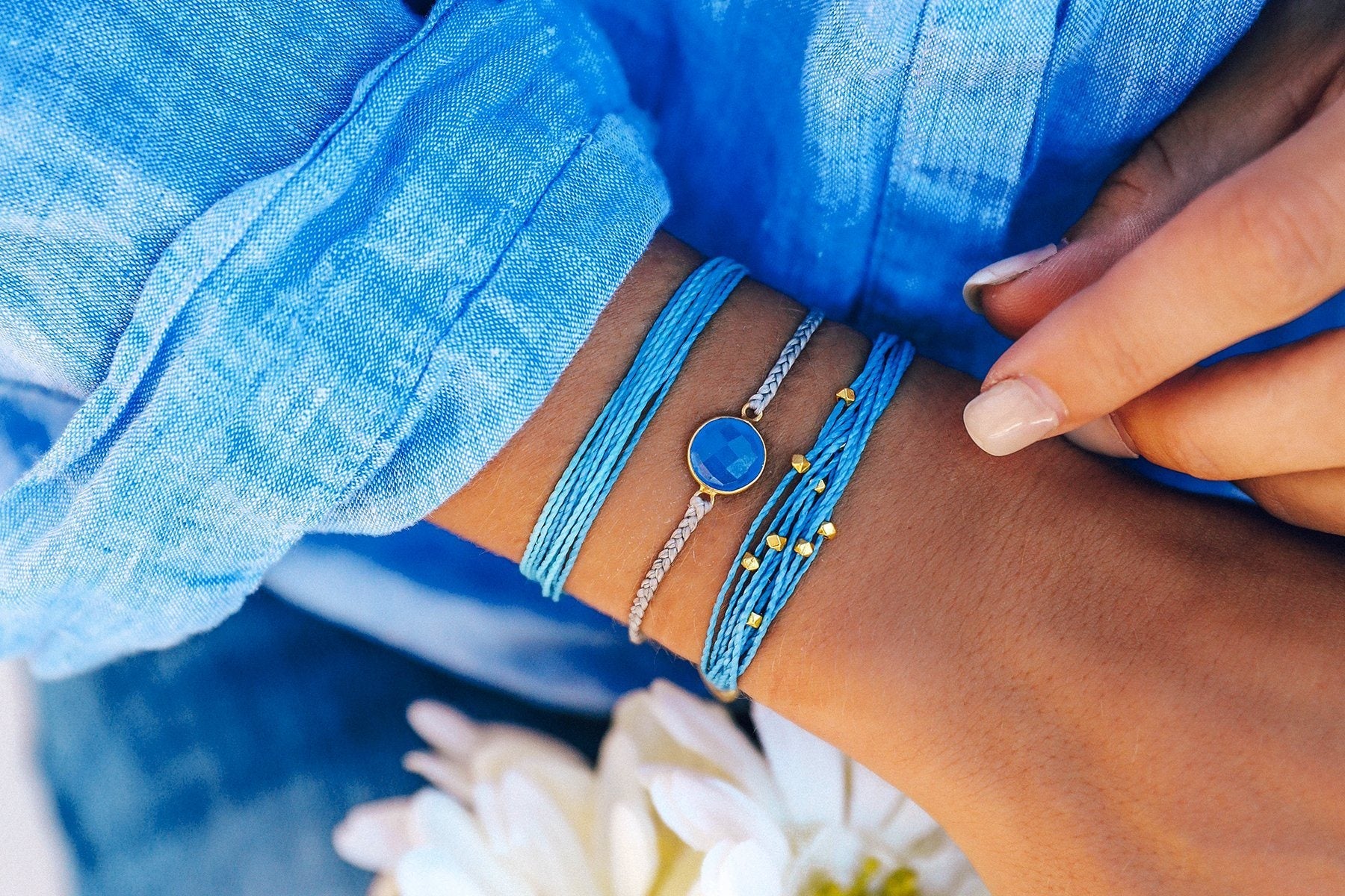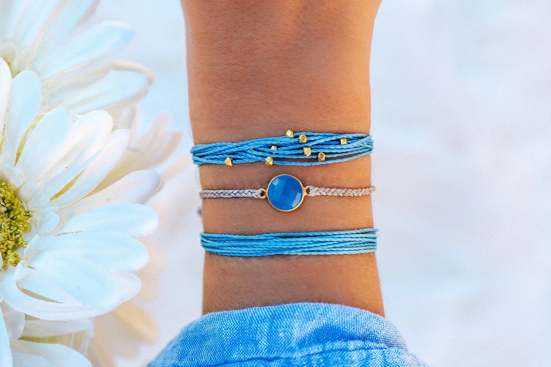 The Parkinson’s Disease Awareness Pack features our updated Parkinson’s original bracelet paired perfectly with a Malibu bead bracelet, and a charm made of blue chalcedony, which is believed to be ideal for calming and soothing the mind. And because each chalcedony stone is unique, no two packs look alike! 5% of the purchase price* will be donated to the Parkinson's Foundation in support of their efforts to make life better for people with Parkinson’s disease.