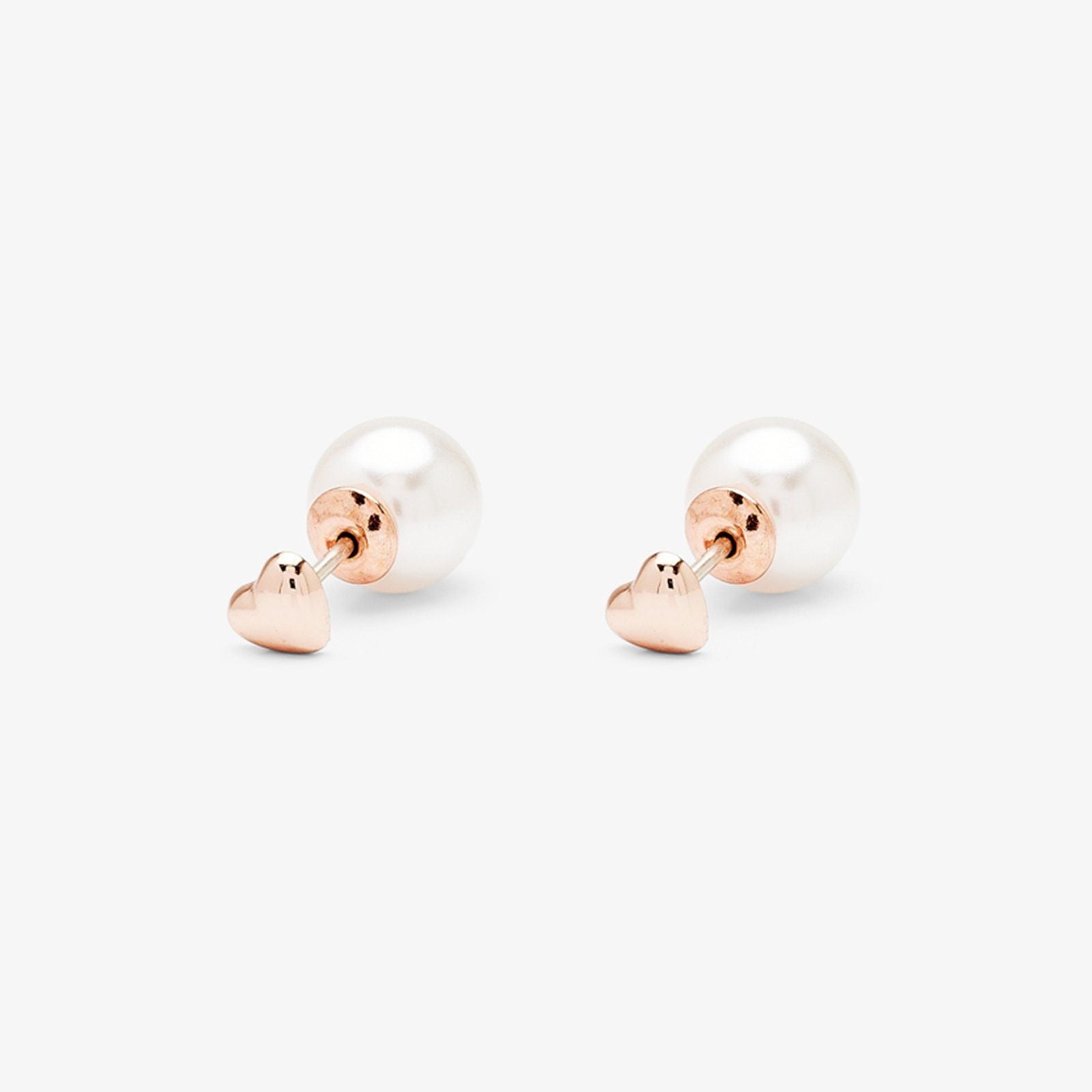 Can't decide between pearls or hearts? You don't have to with our new Pearl and Heart Double Sided Studs! Where these rose gold earrings with the hearts facing out or flip them around to show off your pearls, girl!