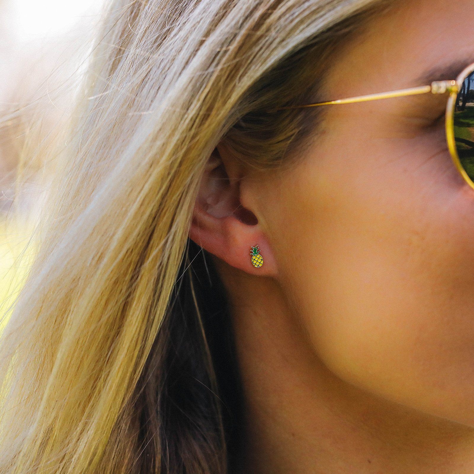 Pining for a cute pair of summer earrings? Our Pineapple Stud Earrings are just the juicy style you’ve been searching for! Available in two options—silver with white enamel and gold with yellow enamel—this fruity design is sure to become everyone’s favorite this season.
