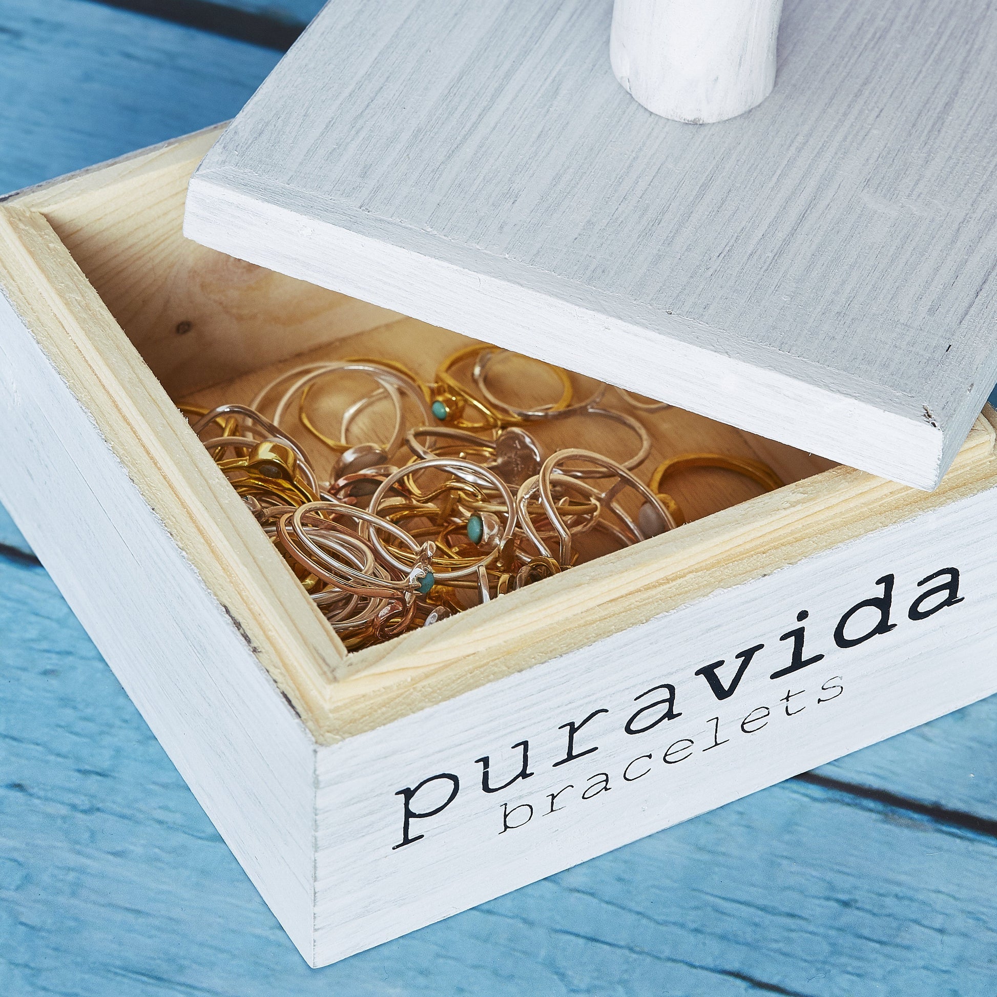 Have tons of PV rings and need a cute way to store ‘em? That’s where our Ring Tree Display comes in! Made with whitewashed wood and featuring the Pura Vida Bracelets logo, this chic storage piece even has a hidden compartment to keep all your favorite bracelets in, too.