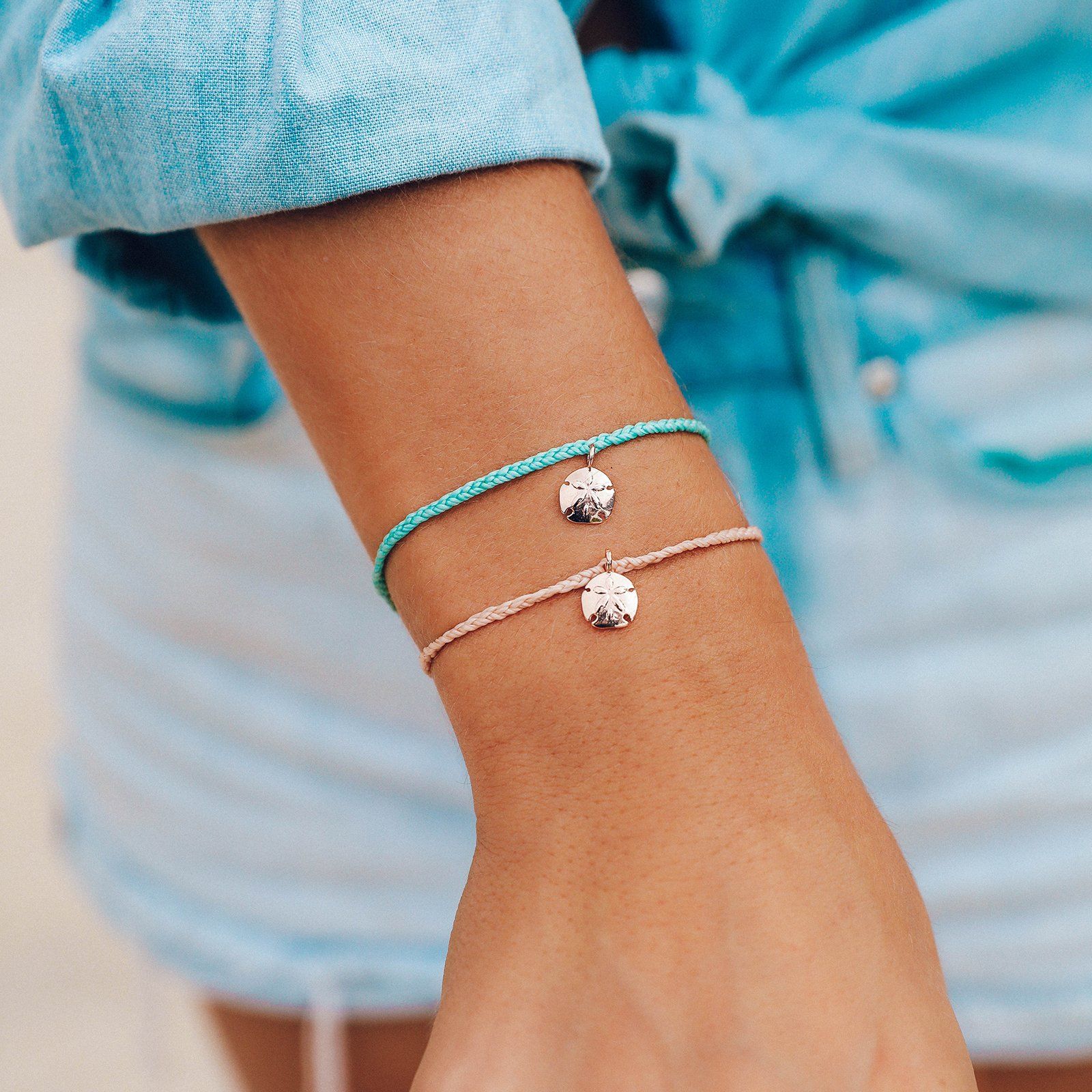 Get in a summer state of mind with our new Sand Dollar Charm Bracelet! Designed with a bitty braided band, it features a rose gold sand dollar charm to bring you beachy vibes wherever you go.