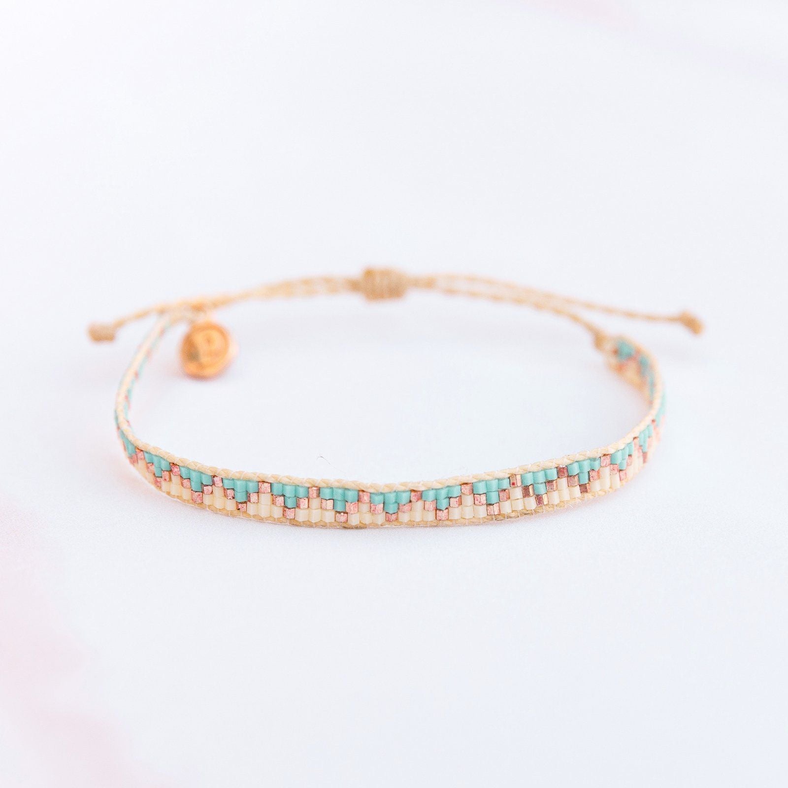 Seed bead bracelets are a must in the Outer Banks! Our new Sandy Blue Woven Seed Bead Bracelet features rose gold, cream and light blue seed beads woven onto an almond colored cord! Buy this one individually or get it in the new Destiny Pack by Madison Bailey!