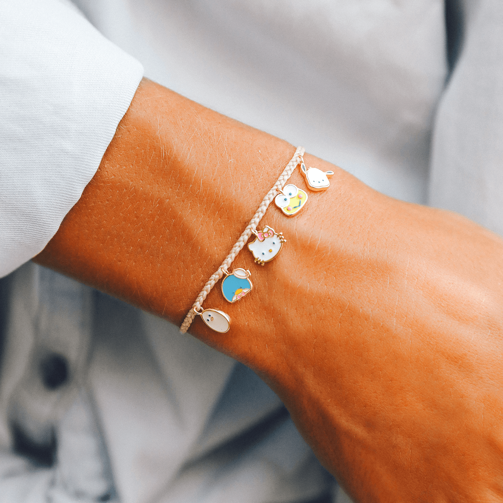 Rep all the cutest characters with our Sanrio Best Friends Charms Cord Bracelet! Set on a white bitty braid band, this adorable bracelet features five enamel charms of everyone’s favorite Sanrio characters: Hello Kitty, Gudetama, Tuxedosam, Keroppi and Pochacco. For each Sanrio style sold on our website, Pura Vida will donate 5% of the purchase price* to Kindness.org, a nonprofit organization dedicated to building a kinder world.
