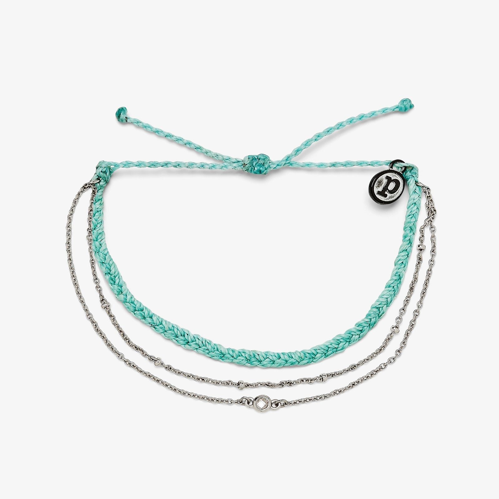 It doesn't get more dainty than the Satellite Chain Bracelet! Featuring a bitty braid bracelet in seafoam or white paired with two delicate chains and a clear glass stone detail that makes it all the way chic.