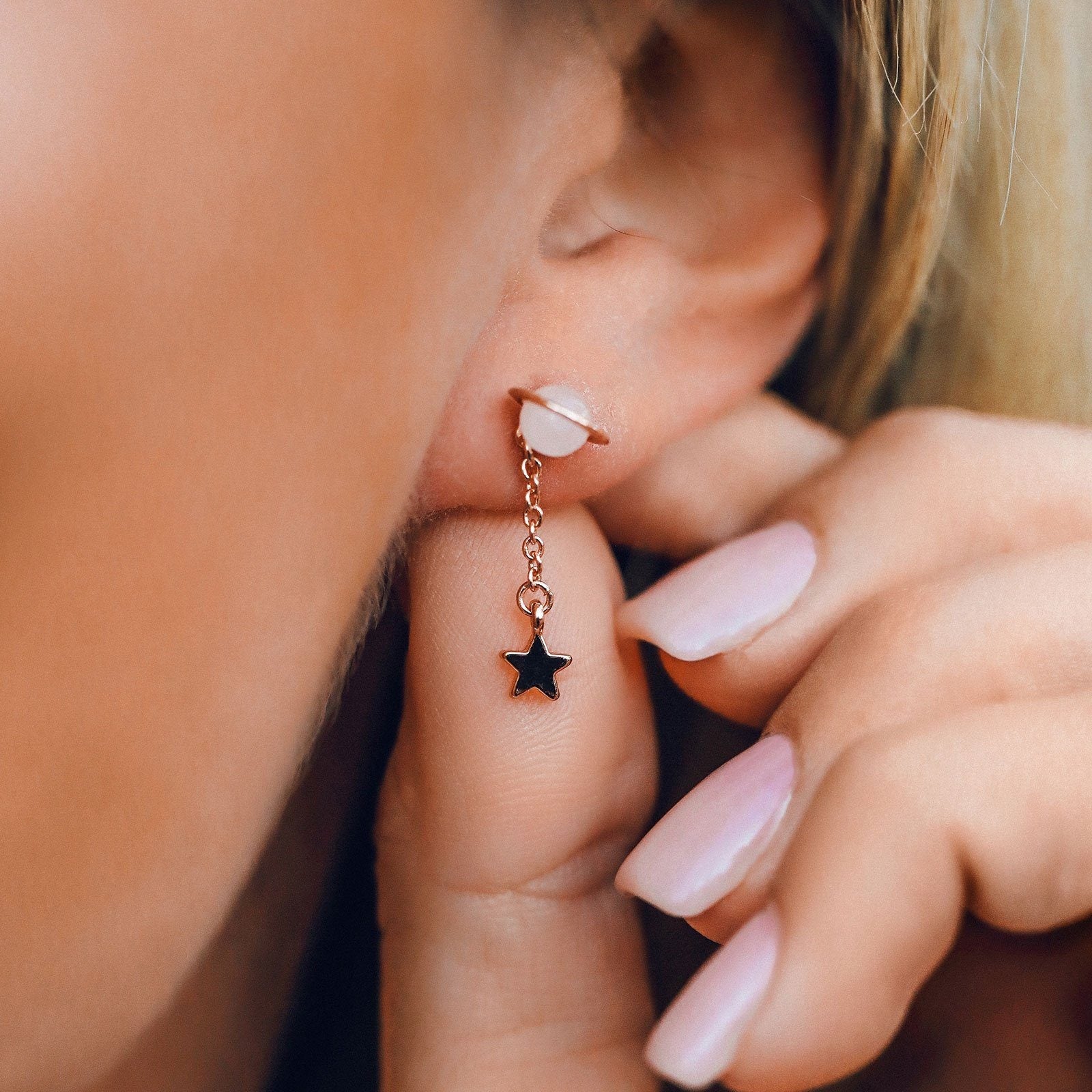 Calling everyone who’s space-obsessed: Our Saturn Necklace & Earring Set is the perfect pair for you! This insanely cute set features a pair of shimmering Saturn stud earrings with a dangling star charm, plus a matching rose gold Saturn charm necklace that’s lightyears beyond beautiful.