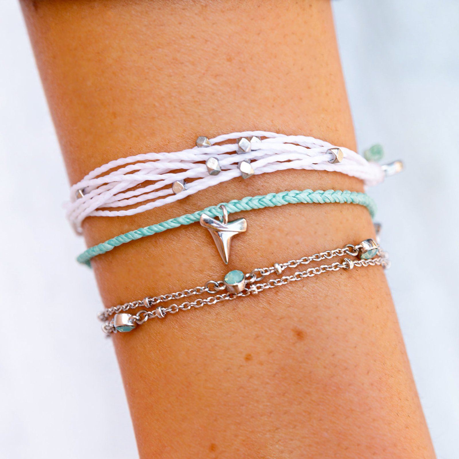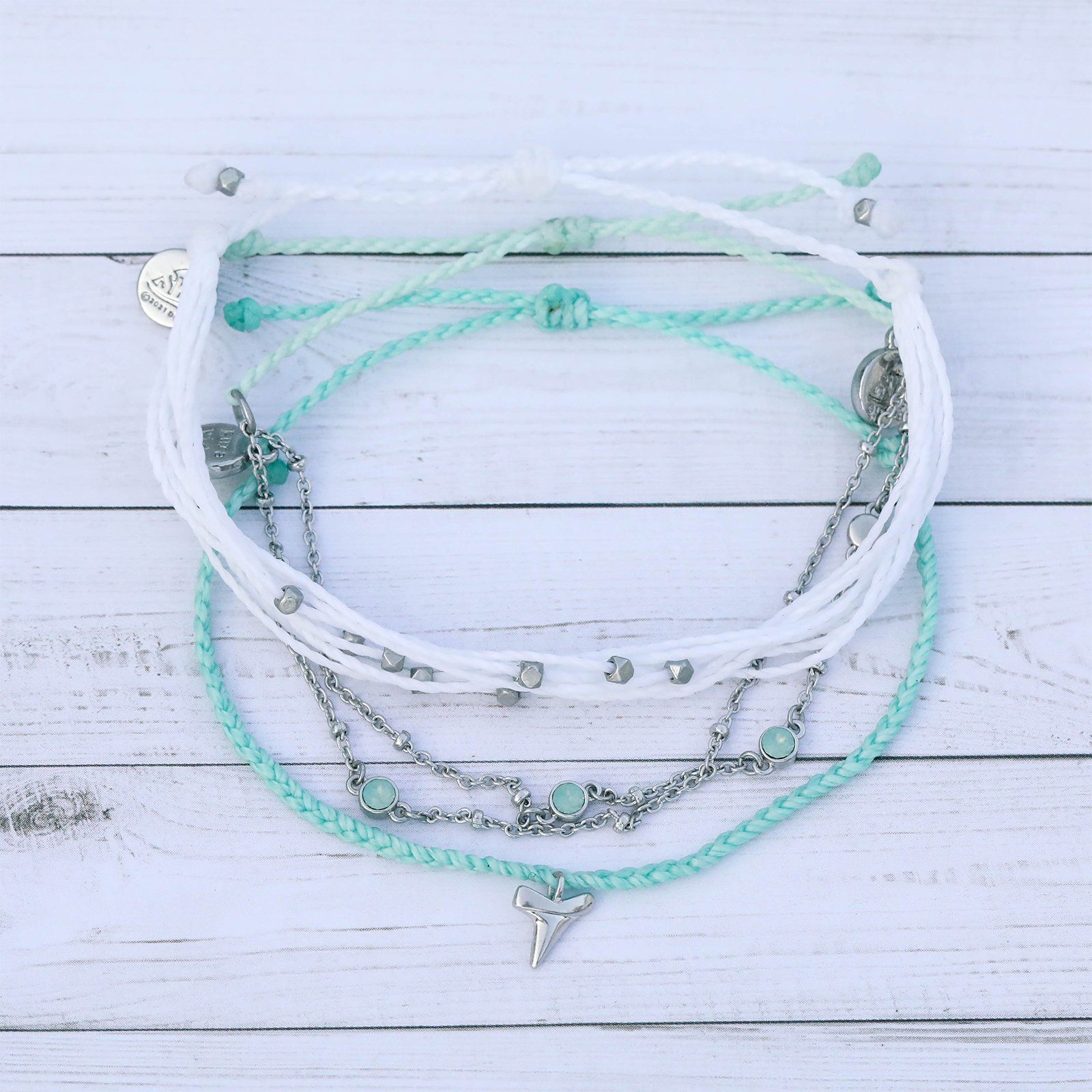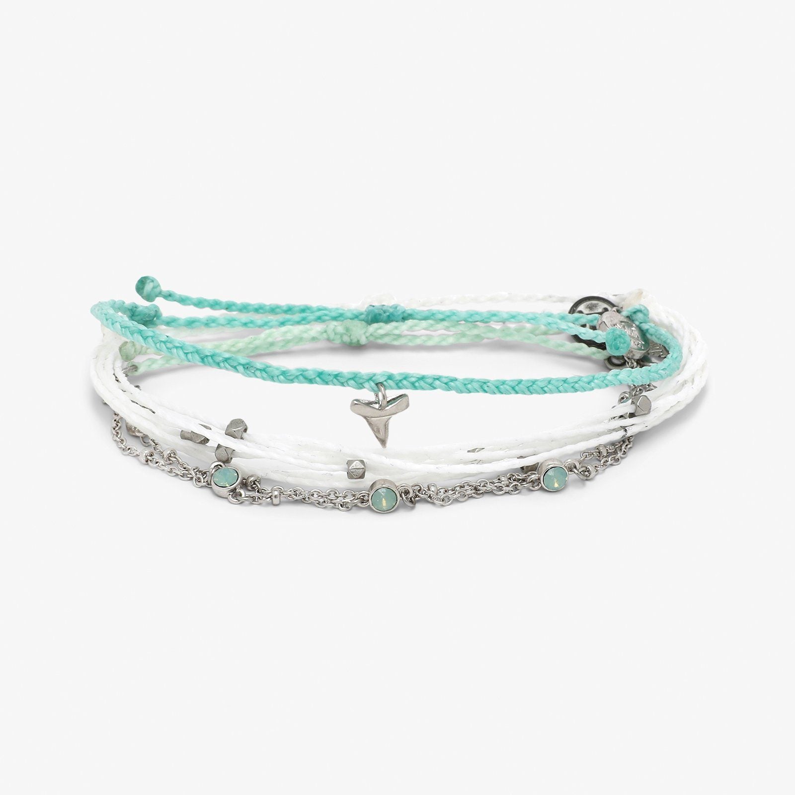 Dive into our new Shark Style Pack! Featuring one of our classic Malibu Bracelets, a Shark Tooth Charm and a Pacific Opal Satellite Chain Bracelet, this pack will have you swimming with sharks in no time!