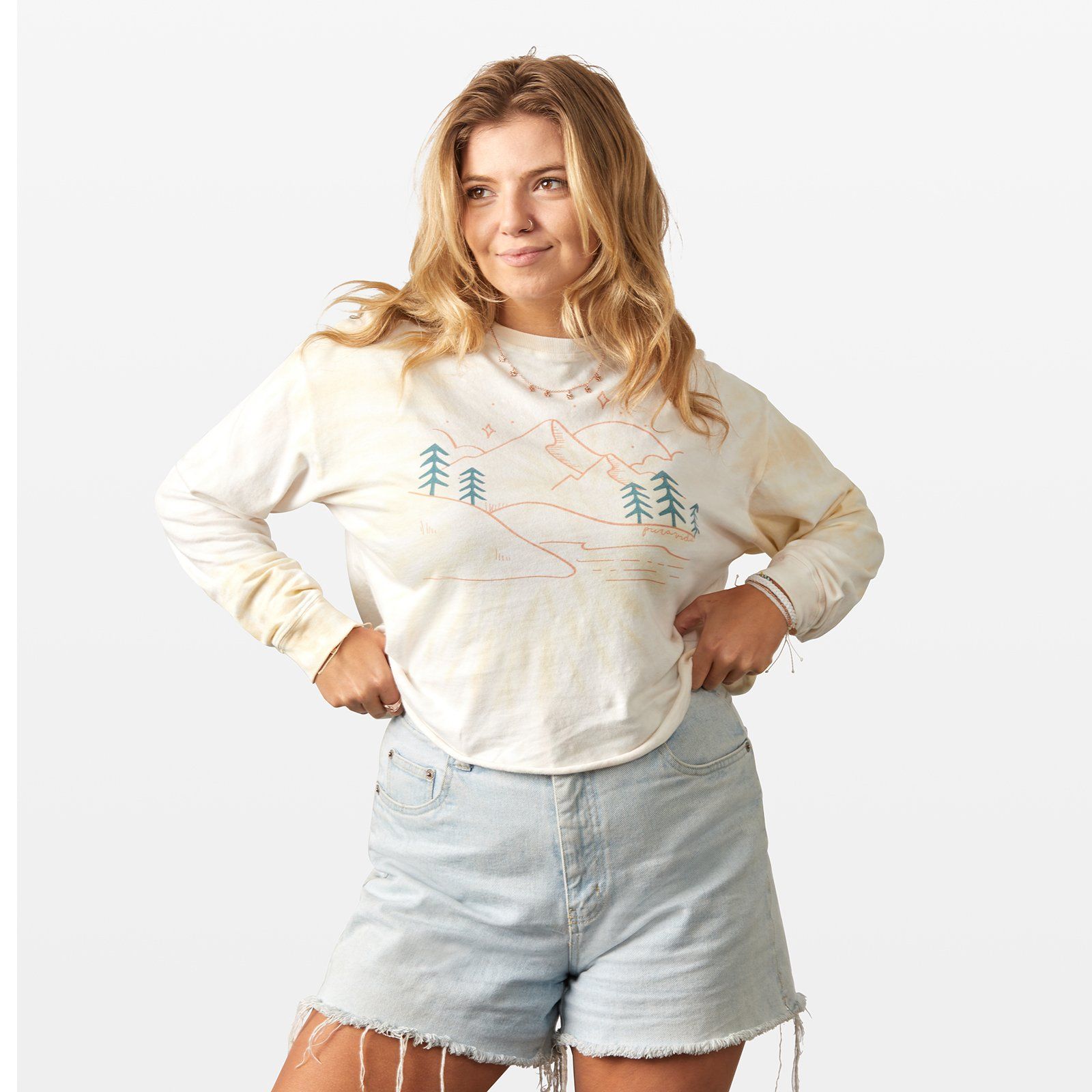 Follow the adventure of your dreams wearing our new Simple Adventure Long Sleeve Tee! This cropped long sleeve features a boxy and relaxed fit with a pretty sunrise tie dye wash and a traditional style mountain graphic saying “Simple Adventure”! Just a reminder, this shirt will shrink after washing it for a perfect fit in all the right places!