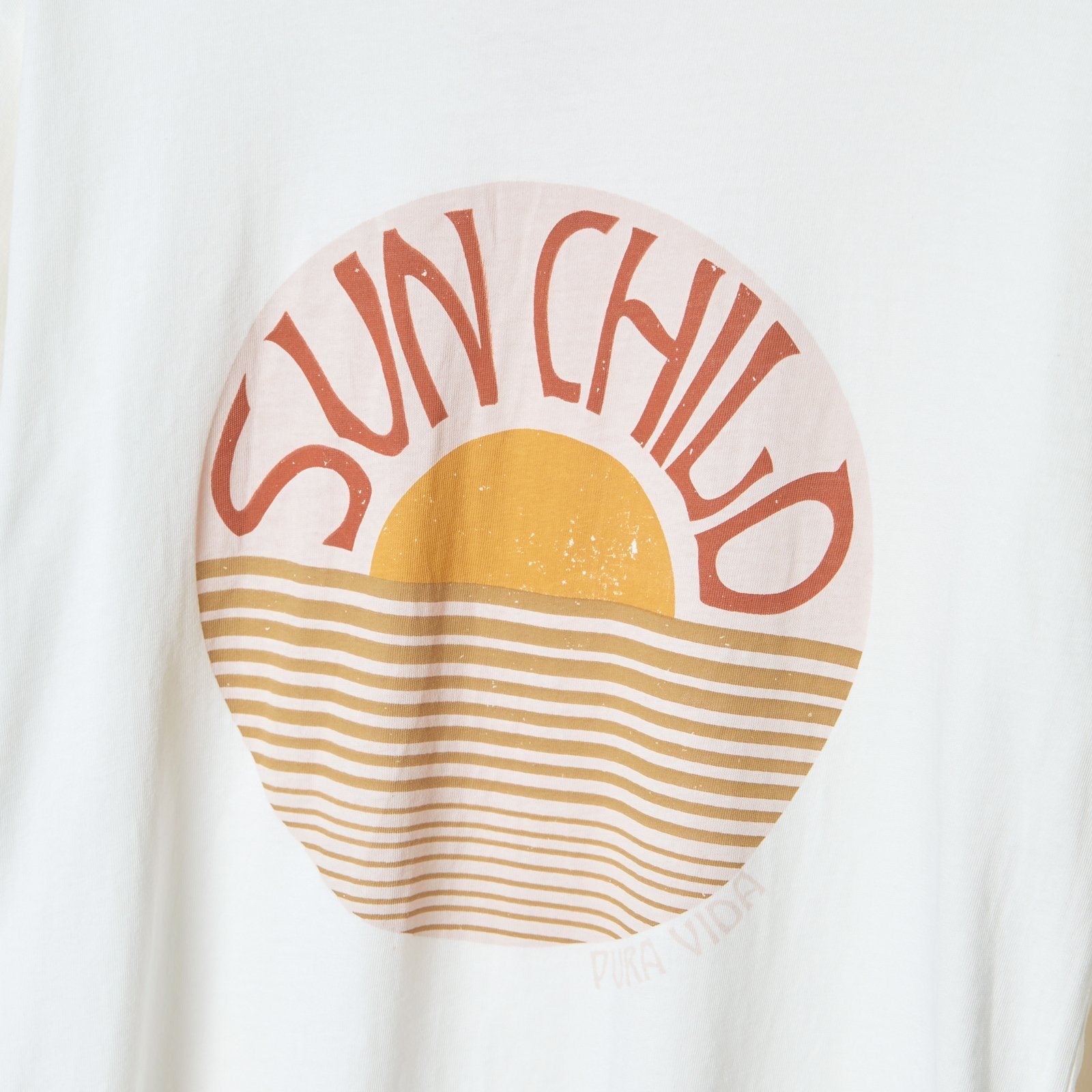 Our Sun Child Crew Tee is the epitome of Cali cool. With a slouchy fit and major vintage vibes, this distressed graphic tee looks amazing with a suede skirt and aviators or a pair of high-waisted flare jeans.