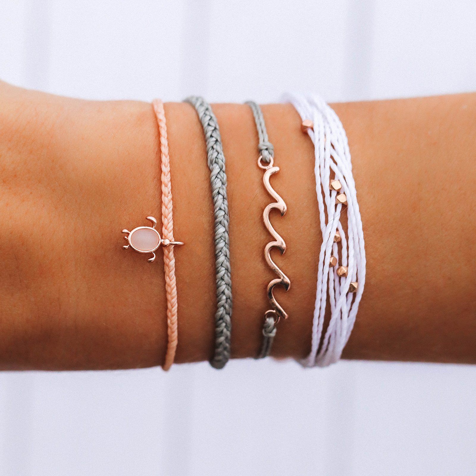 There’s nothing quite like watching a sunset fade over the ocean, and that’s exactly our inspiration for the Sunset Seas Style Pack! This super-pretty stack includes a Delicate Wave Bracelet, sea turtle charm style, a simple braided design and our best-selling Malibu, all with hints of romantic rose gold.
