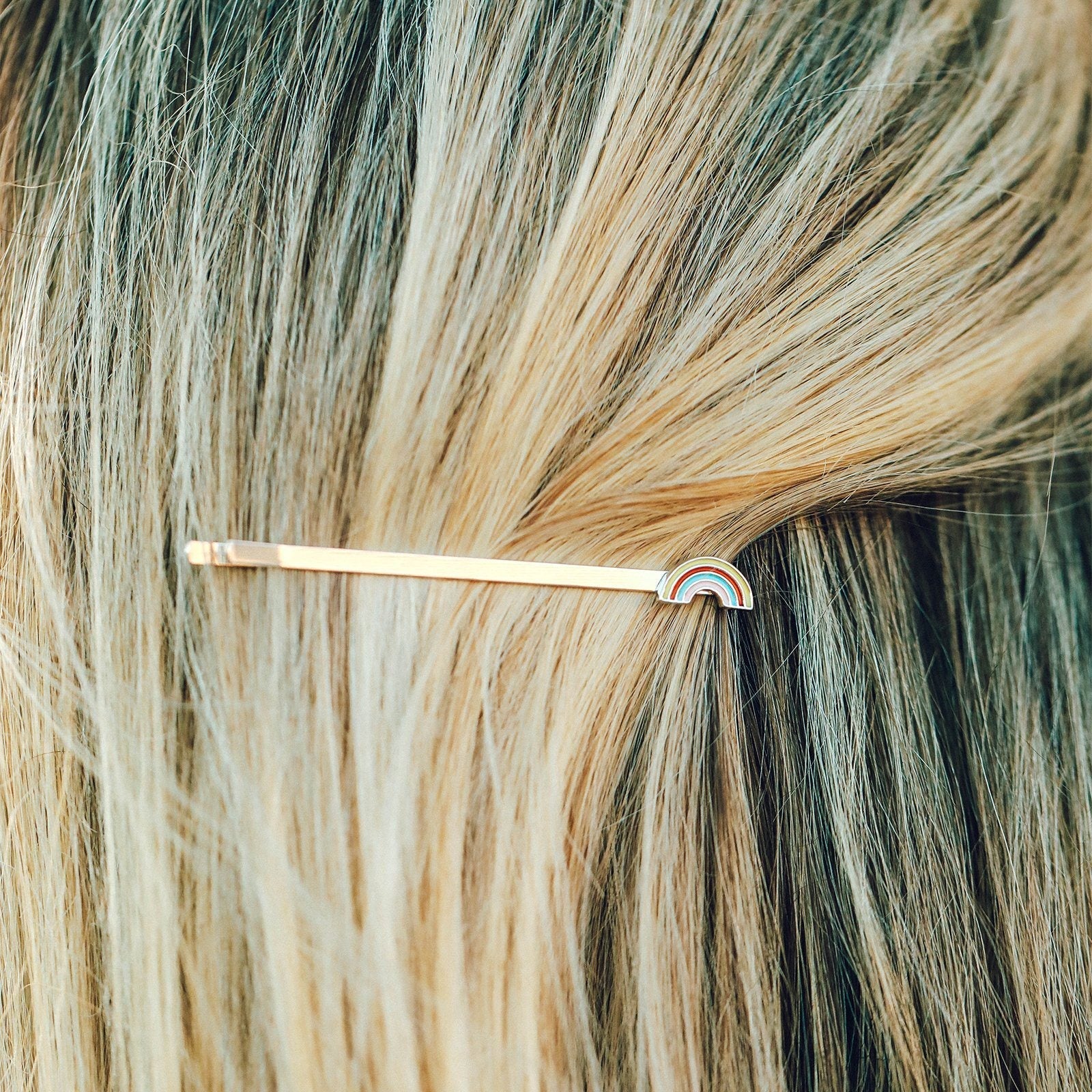 Our Sunshine Hair Pin Pack will make you feel electric. This set of four designs include alphabet beads spelling out ‘sunshine,’ a dainty daisy charm, a cute and colorful beaded pin and a vibrant rainbow charm. Wear them all together or mix and match with different ‘fits.