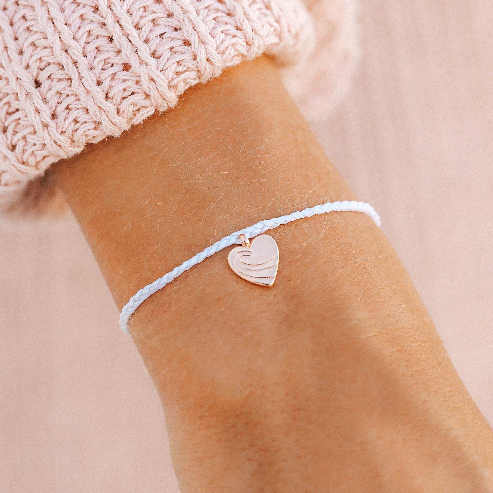 Show everyone just how much you <3 the sea with our Surf Love Bracelet. Available in four string colors and two metal finishes, this bitty braid style features a dangling heart-and-wave charm that’s gorgeous both on and off the beach.