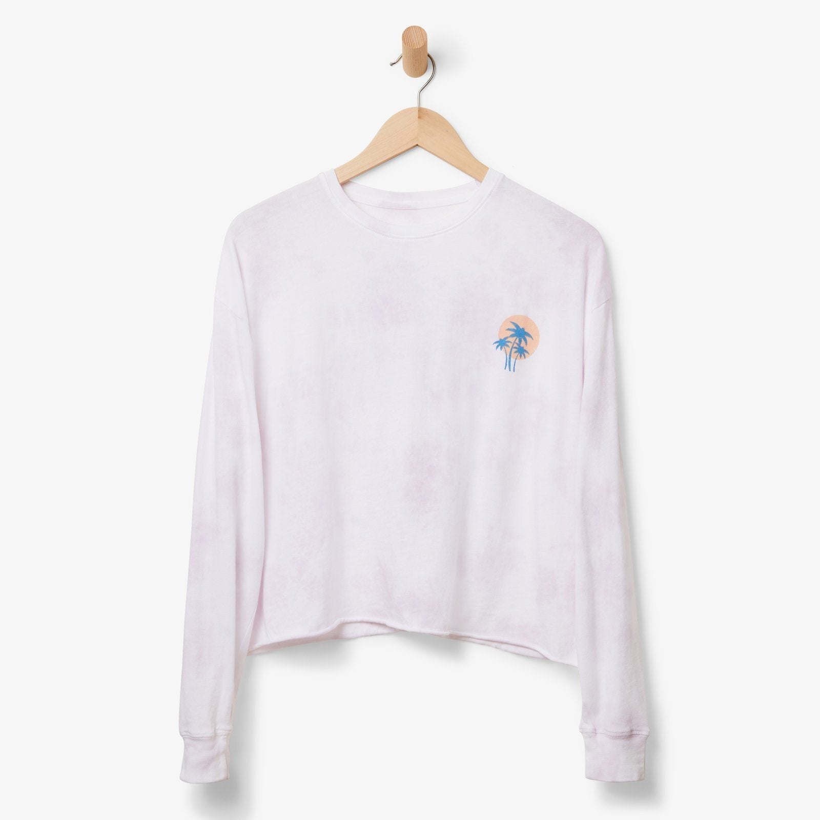 The surf tour of all surf tours has arrived! Our Surf Tour Long Sleeve Tee has major throwback feels with a vintage inspired tour design on the back in our famous Pura Vida colors - teal and pink! On the front of this faded purple tie dye cropped long sleeve is a distressed tropical logo that is without doubt a PV vibe! The Surf Tour Long Sleeve Tee will shrink in all the right places for a perfect fit when you wash it!