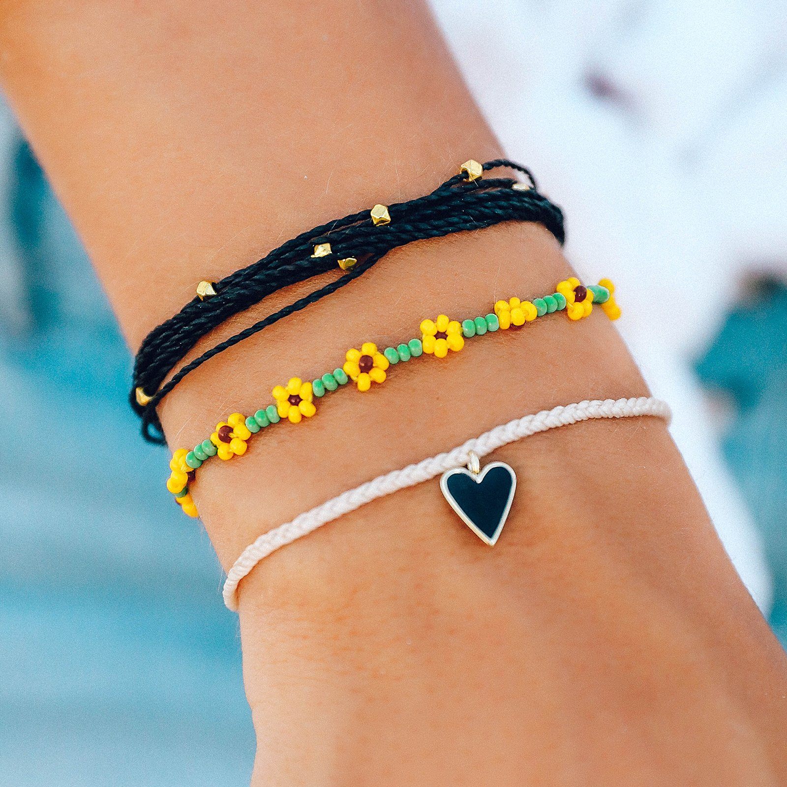 Add some edge to your sweet summer style with our new Sunflower Pack! This set of three best-selling bracelets includes a bold black Malibu design, the Sunflower Seed Bead Bracelet and the super-cute Petite Heart Bracelet.