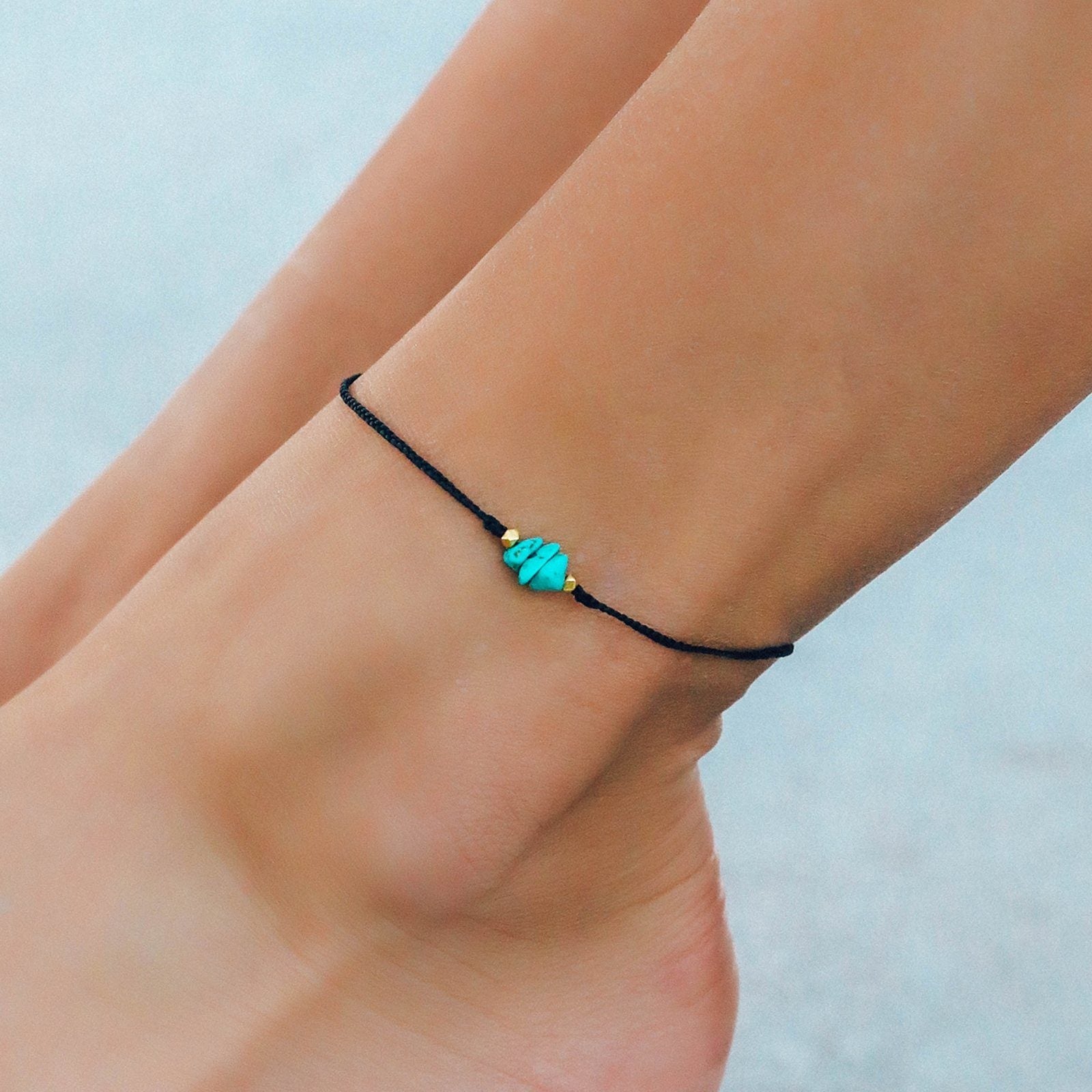 Nothing says summer like our Turquoise Raw Stone Anklet. This simple-but-chic style features an itty bitty braided band, a pair of faceted beads and gorgeous turquoise stones. The stones are 100% genuine (aka 100% unique!).