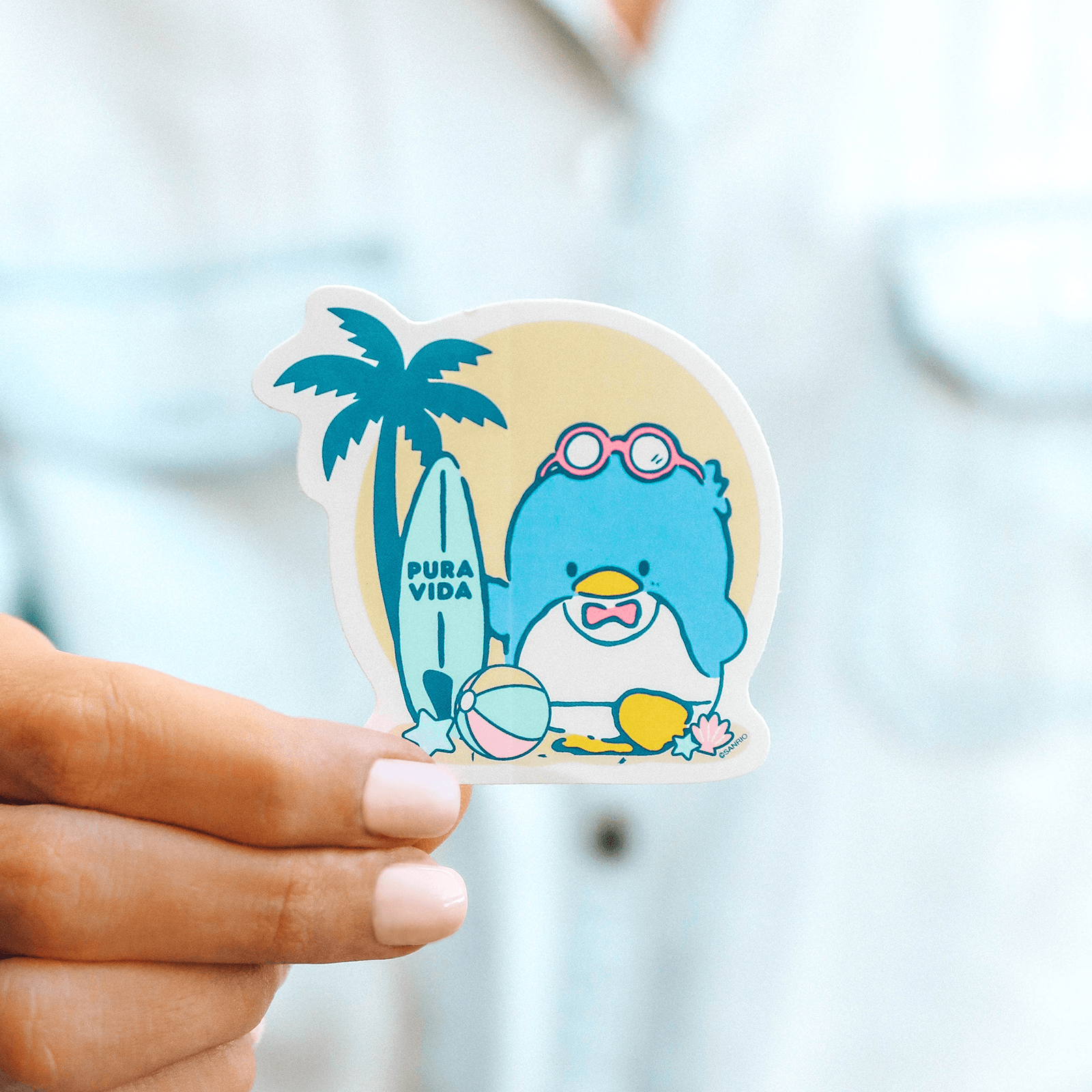 Rep the goofiest Sanrio character with our Tuxedosam Sticker! Featuring the Sanrio penguin character in a cute surfing scene, this sticker lends a nostalgic look to your phone case, laptop, water bottle and more. For each Sanrio style sold on our website, Pura Vida will donate 5% of the purchase price* to Kindness.org, a nonprofit organization dedicated to building a kinder world.