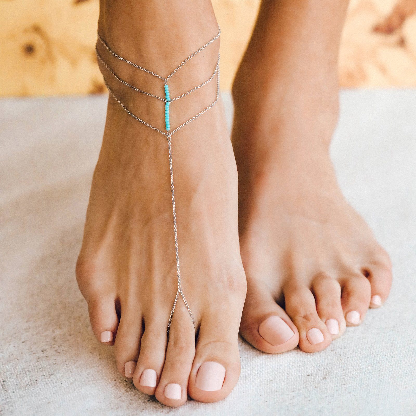 Look like a total beach goddess in our Wailea Anklet. This chic silver design features multiple delicate chains that connect from your ankle to your toe, with bright seed beads inspired by the hues of the Hawaiian sea.