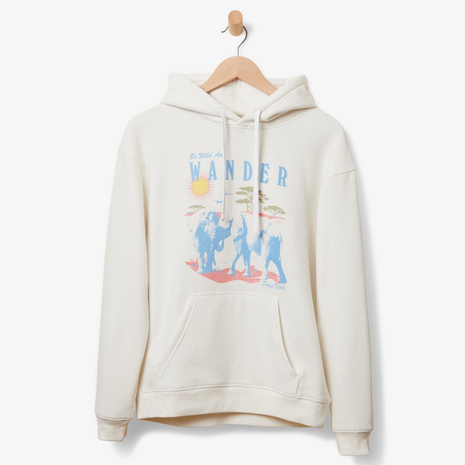 Never stop exploring with our Wander Elephant Hoodie! This vintage white hoodie has a super cool vintage feel with a distressed safari graphic on the front that says “Be Wild And Wander”! This tee is sure to be on rotation all year round! Once you wash it, it’ll shrink in all the right places for a perfect fit!