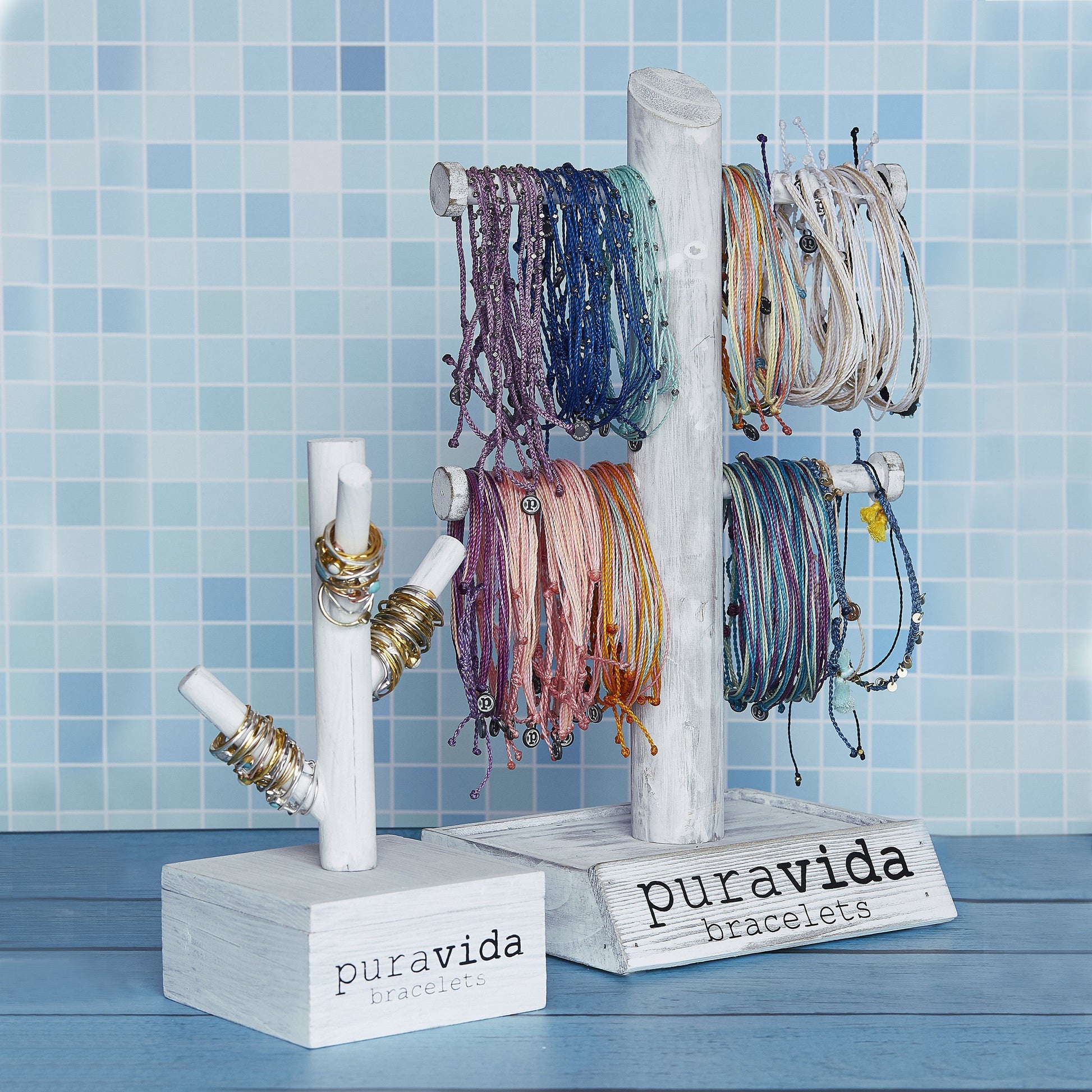 Keep your Pura Vida Bracelet collection safe and organized with our new hand-made Wooden Tree Display. Stack it up and show it off to your friends by filling up all 4 branches.