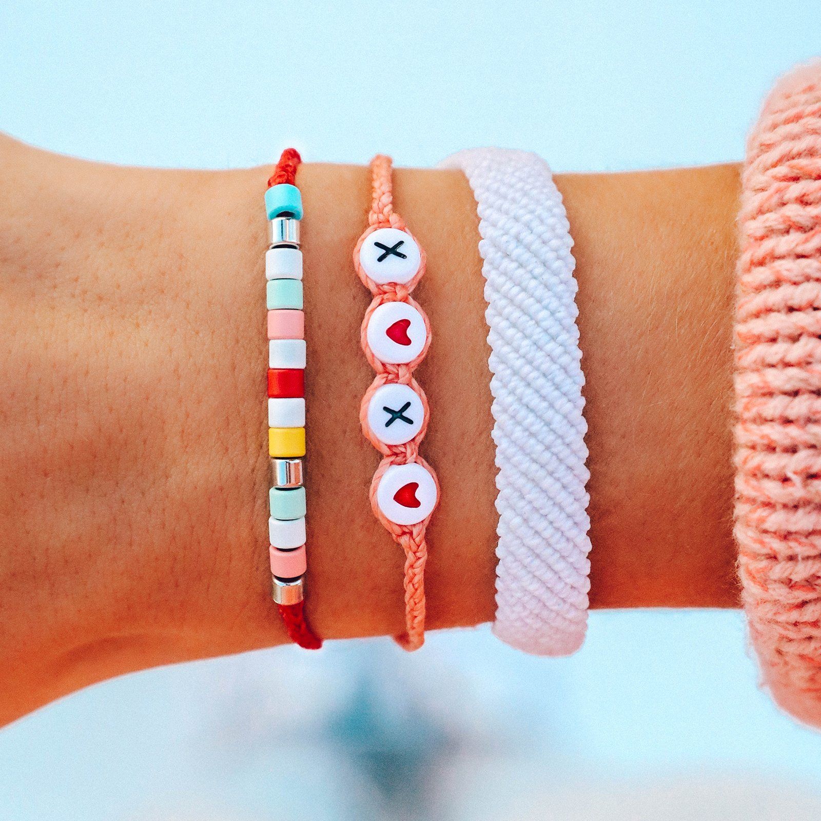 There’s soooo much to love about our XOXO Style Pack. This three-piece stack comes with a woven design, an aww-dorable alphabet bead style and a colorful beaded bracelet you’re sure to <3.