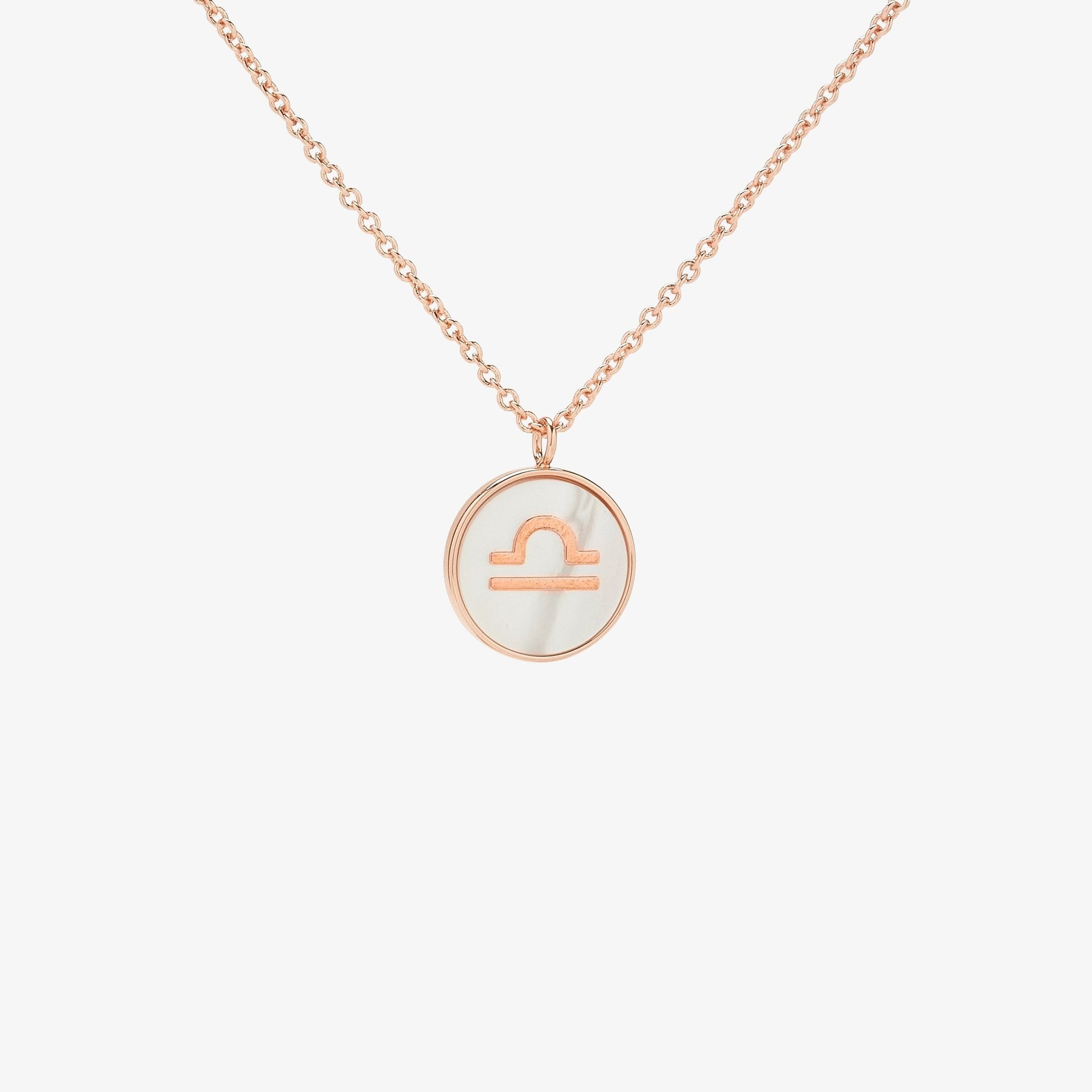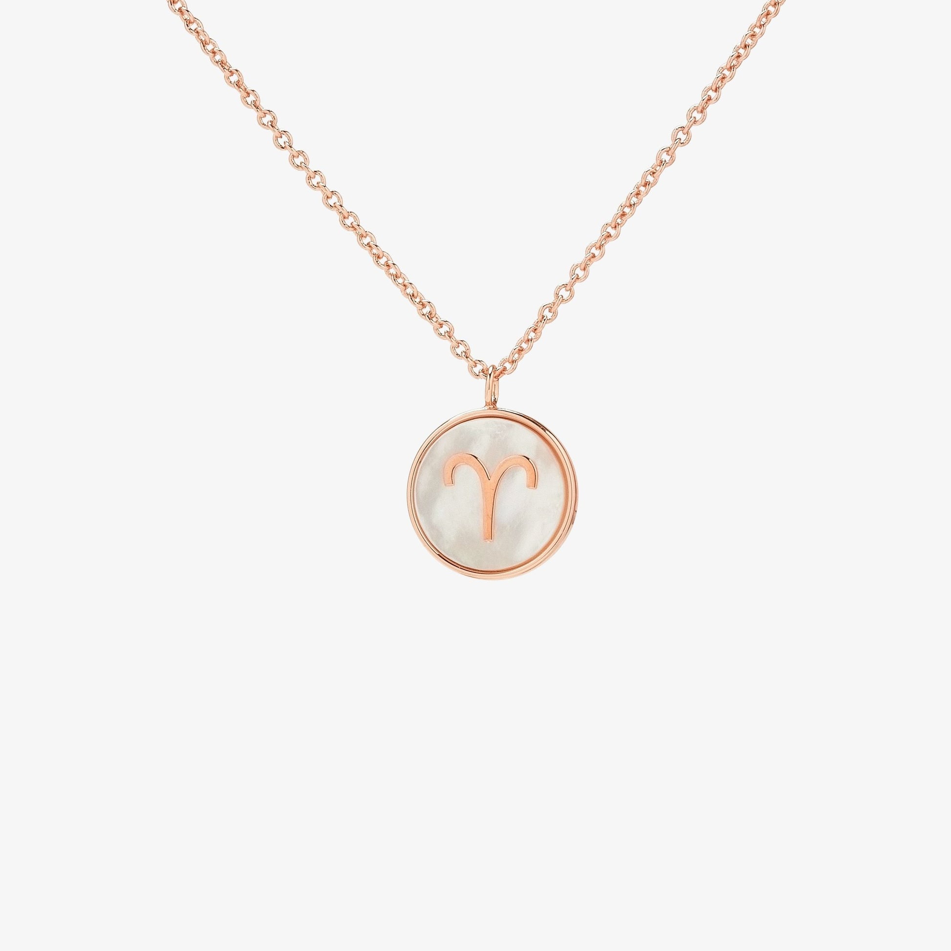 The stars have aligned to bring you our Zodiac Mother of Pearl Necklace! Available in all twelve astrological signs, each rose gold design features a Mother-of-Pearl-inlay pendant, with the zodiac symbol on one side and engraved name on the other.